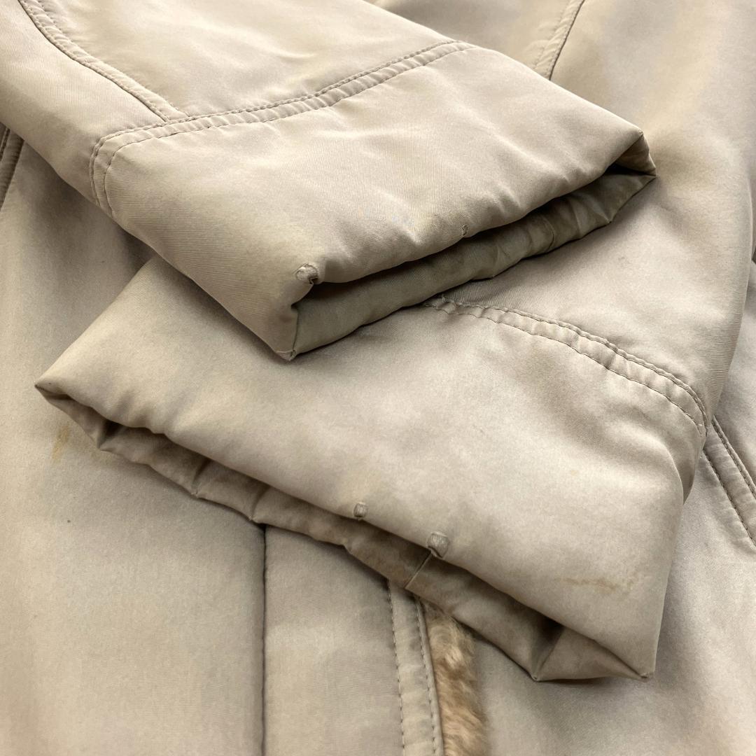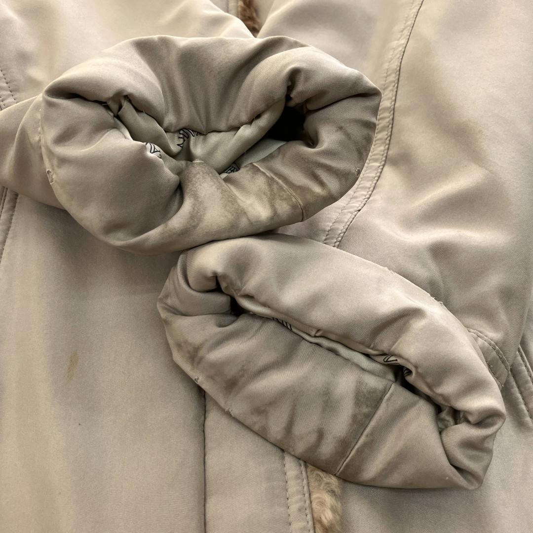 • 表面下部と内側にシミがあり、袖口は擦れによる破れと内側に汚れがあります。着用に問題が出るような大きなダメージは見られません。