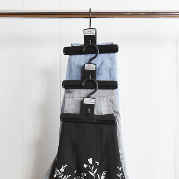 収納効率の良い、薄型設計・連結式のクリップ! ・スラックス・スカートをしっかりクリップ。 ・スリムな薄型なのに連結式でさらに収納力アップ。 ・かさばらずスペースを有効利用できます。 生産地 : 日本 サイズ : 商品サイズ(約):幅200X高さ165mm(厚さ:35mm) 素材 : 本体:ハイインパクトスチロール すべり止め:EVA フック:ポリプロピレン ブランド : シンコーハンガー |