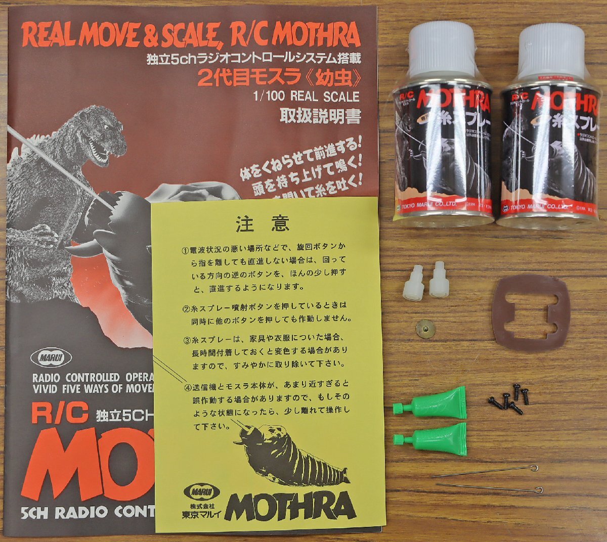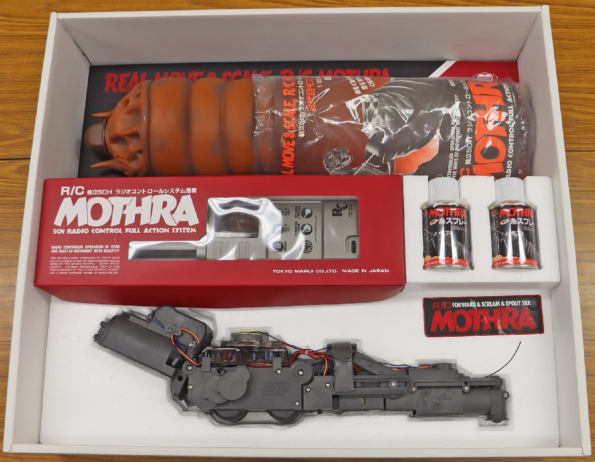 | M◎中古品◎ラジコン『R/C2代目モスラ(幼虫)』 40MHz帯使用 独立5CH 東京マルイ 1/100スケール 5動作 モスラ糸スプレー缶未開封 | |