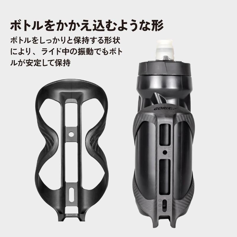 ボトルをしっかりと保持する形状により、ライド中の振動でもボトルが安定して保持されます。