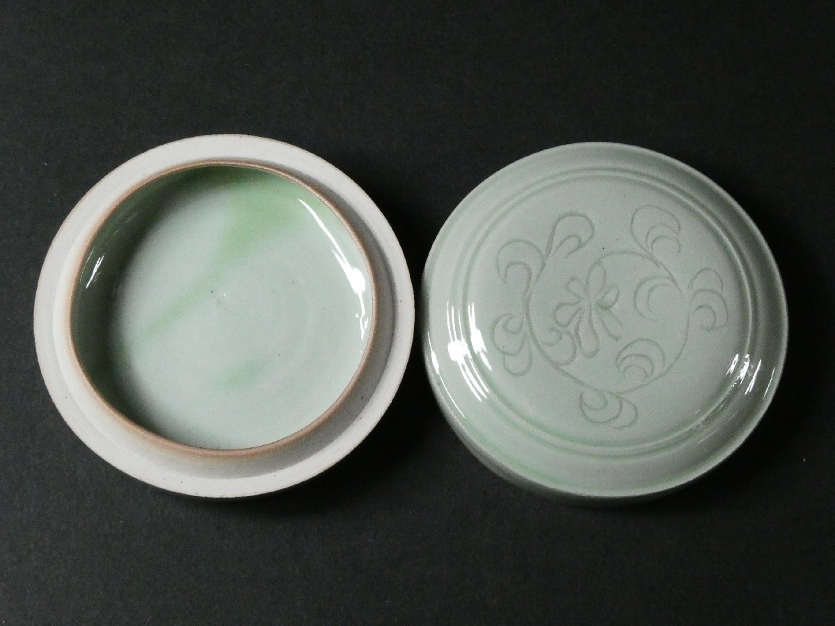 | ・水上和則 合子 共箱 弥生刻 /香道具 茶道具 香合 青磁 |