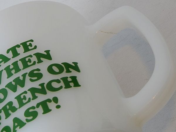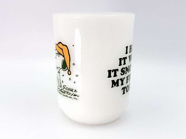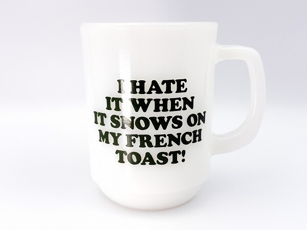 ■商品説明:ファイヤーキングのスヌーピー・マグカップ「フレンチトースト」です。 フレンチトーストに雪がつもり、ちょっと不機嫌なスヌーピーがとっても愛らしいマグです。