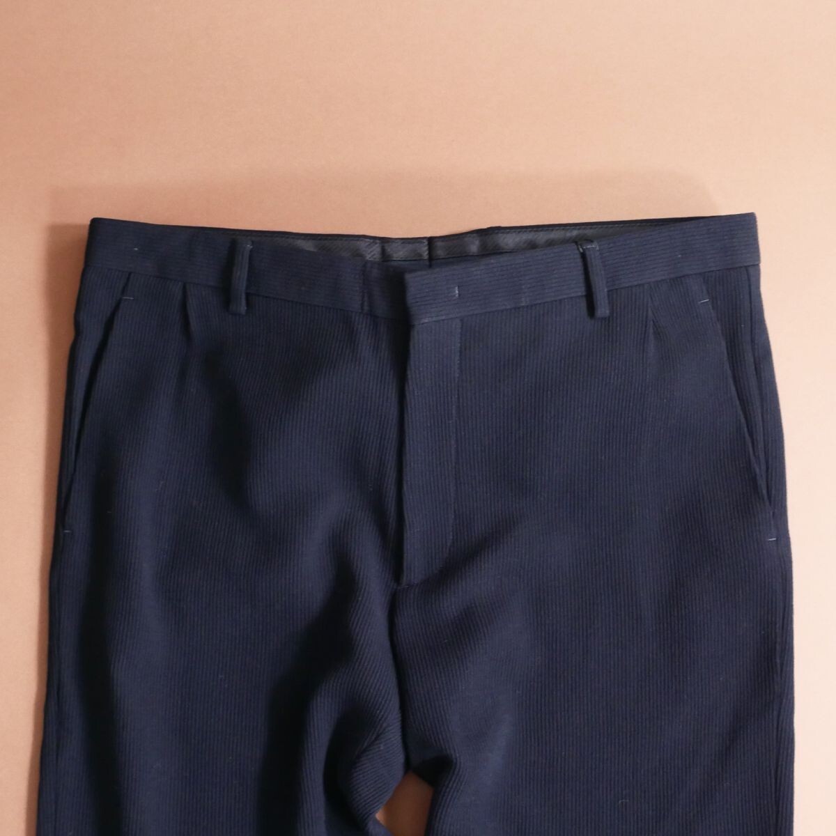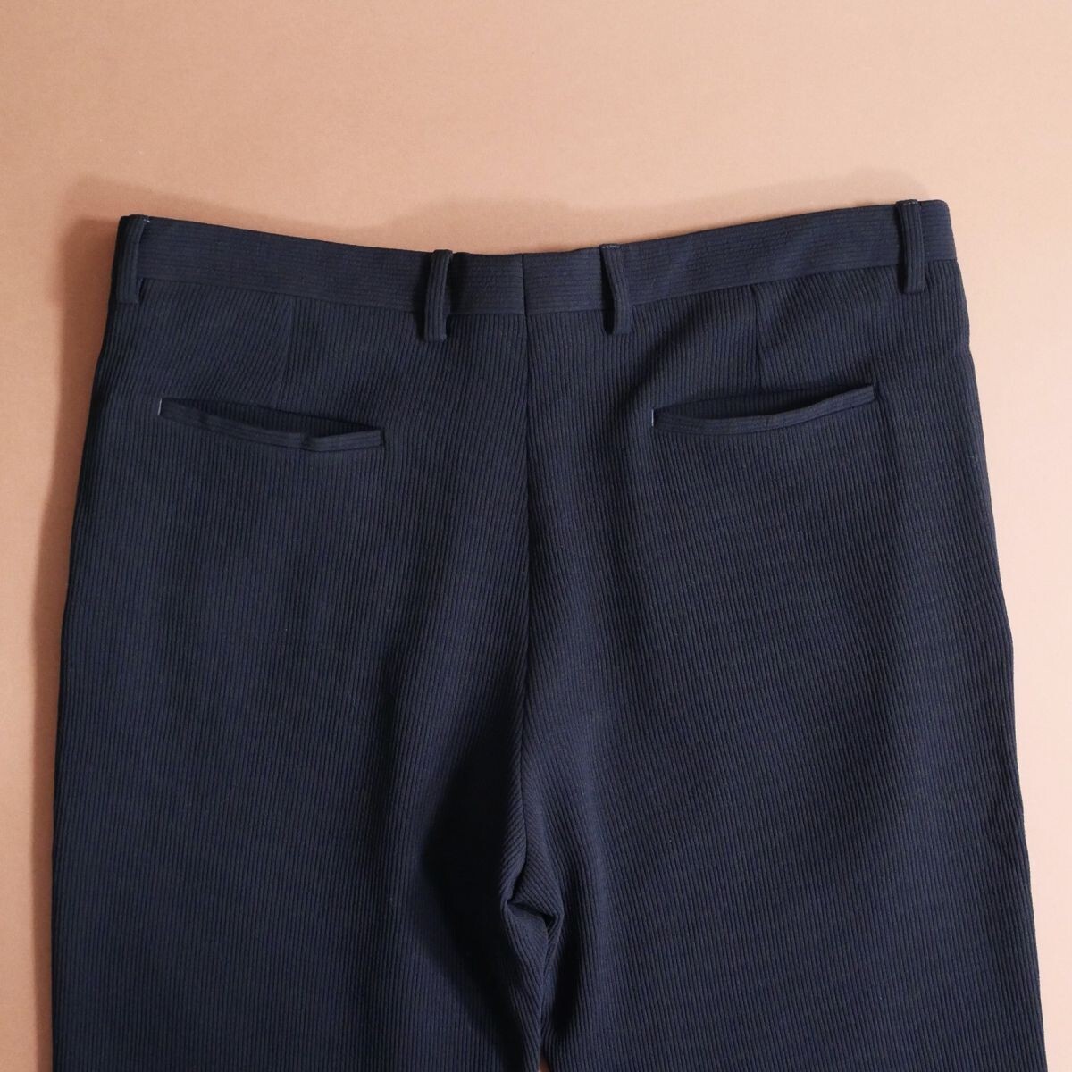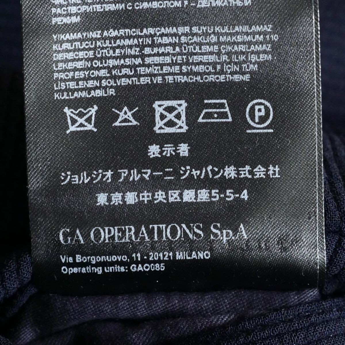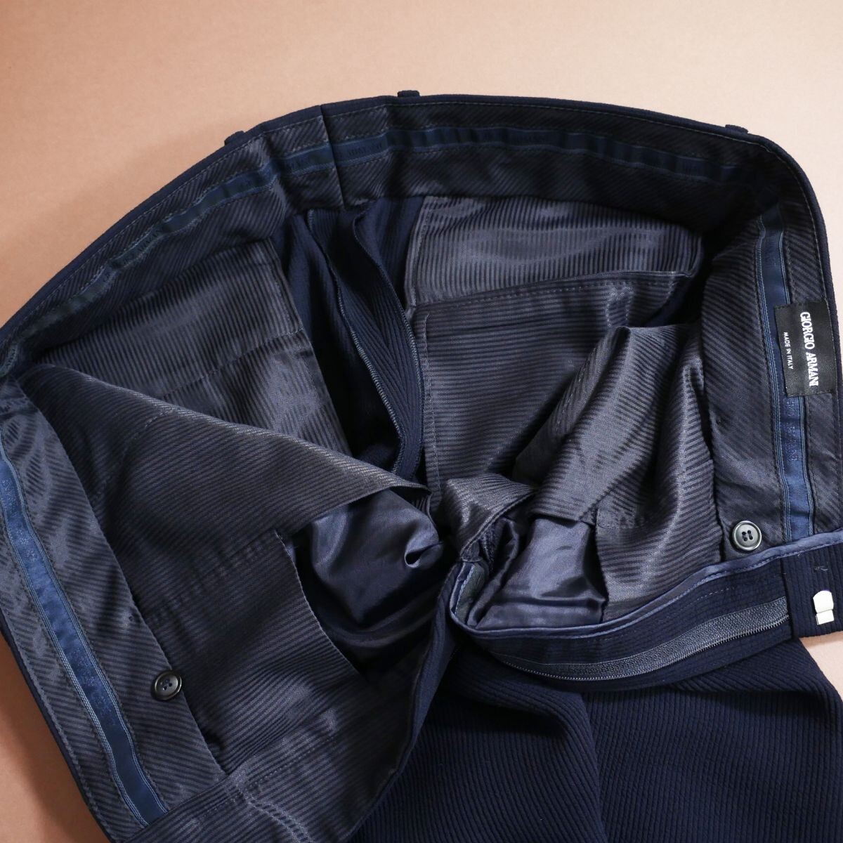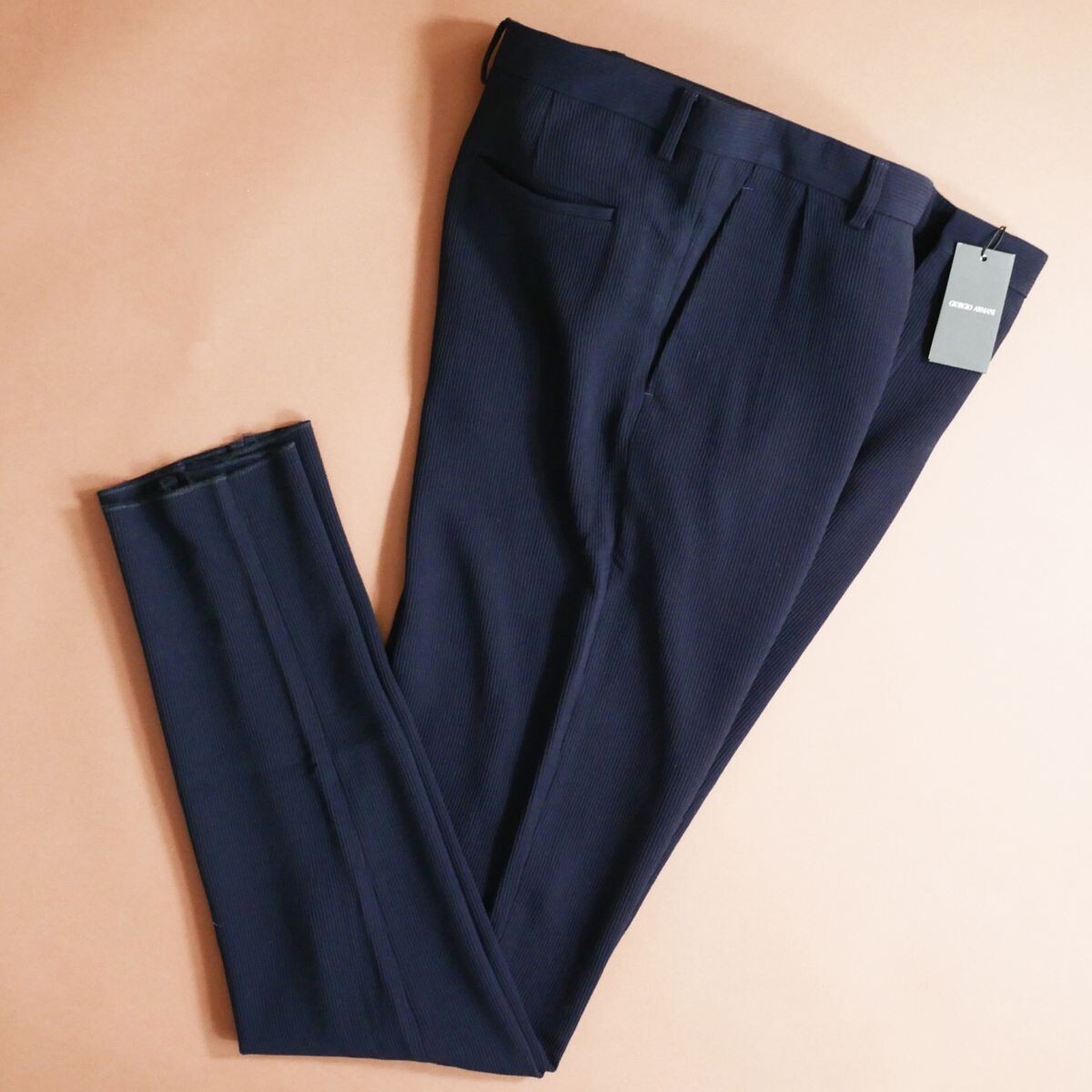 ●イタリアのプレミアムラグジュアリーブランド「GIORGIO ARMANI(ジョルジオ アルマーニ)」による、オールシーズンご着用いただける上質ウール混紡スラックスパンツでございます。イタリア製。タイムレスなエレガンスと現代的な快適さを兼ね備えた一本で、ビジネスからカジュアルな装いまで幅広くご活用いただけます。 ●高級感のあるネイビーの生地は、細かな畝のような立体的なテクスチャーが特徴。光の加減でわずかに陰影が生まれ、上品な奥行きを感じさせます。滑らかでしなやかな肌触りながら、適度なハリを持ち、美しいシルエットをキープします。 ●フロントはノータック仕様、サイドポケット付き。バックスタイルには両玉縁ポケットを採用し、ミニマルかつクラシックな印象を与えます。ウエスト周りはすっきりと仕立てられ、アルマーニらしい精緻なパターンメイキングによって脚のラインを長く見せる計算されたカッティングとなっております。 ●素材は、ビスコースとヴァージンウールをブレンドした上質なファブリックを使用。柔らかさと伸縮性を兼ね備え、長時間の着用でも快適なフィット感を維持します。通気性にも優れ、季節を問わずご愛用いただける万能な素材感です。 ●ベルトループ付きのシンプルなウエストデザインで、ドレスシャツやジャケットとの相性も抜群。ビジネスシーンはもちろん、オフの日のスマートなカジュアルスタイルにもマッチする万能パンツです。 ●アルマーニならではのイタリアンテーラリングの美学が息づく一本で、着用時のラインの美しさと履き心地の良さの両立を実現しております。長くご愛用いただける定番の名品です。 ●前後ポケットあり。伸縮性あり。前ひざ辺りまで裏生地付。 ●色:ミッドナイトダークネイビー系 ●素材: 表地:ビスコース60%、ヴァージンウール40% (膝裏地:レーヨン100%) 裾テープ生地付き。 ●サイズ:54 *日本サイズ概ねXL-XXLサイズ辺りとなりますが、下記詳細サイズもご確認の上、よろしくお願いいたします。 ●詳細サイズ(cm)置いた状態で: ウエスト約:96 わたり幅:約33.5 股上:28.5 股下:97 裾幅:17 詳細サイズご参考 ※大よその採寸となります。 ※お品物はタイトルにございますもののみとなり、着合わせのお洋服や小物などがございましても、それらは含まれません。 ※素材の特性上、多少のことはご容赦くださいませ。 ※ご質問は、必ずご入札前にお願いいたします。(ご入札後、ご落札後の取引ナビからのご質問はお避け下さい) ☆☆☆ご連絡・お支払い(かんたん決済)☆☆☆ ご落札後24時間以内に、取引ナビからご連絡(お名前・ご住所全て。*サイズ選択いただけるオークションはサイズのご連絡も含め)・かんたん決済可能な方。 *銀行振込の場合は翌営業日、コンビニ決済はご落札後2日目の午前中まで、お支払いをお済ませ下さいませ。 電話応対は、一切致しておりません。取引ナビをご利用下さい。 ☆☆☆受け取り連絡☆☆☆ 製品到着後24時間以内。*出来る限り、到着日当日に受け取り連絡頂きましたら幸いです。 *配達日指定ご希望の際は、ご落札後、最長4日以内に「受取連絡」ができるようお願いします。(北海道・沖縄・離島の方は5日以内) *特別に記載をしました際には、そちらを優先させていただきます。 ☆☆☆同日に2点以上のご落札の場合☆☆☆ 「まとめて取引」を、最初にご選択ください。 *「まとめて取引」を、お届け情報などご入力前にご選択ください。同梱発送となり、一品分の送料のみとなります。 *「まとめて取引」をご選択されなかった場合、出品者側では送料訂正できませんので、予めご了承くださいませ。 新規IDの方は、こちらを必ずご覧くださいませ ☆☆☆ご入札及びご落札のキャンセルはしていただけません☆☆☆ ![]() 【お支払い】 合計金額 = ご落札価格 + 送料 ◆かんたん決済(ご落札後24時間以内に支払い手続きを完了ください。) *2点以上同日ご落札の場合は、『まとめて取引』をお選びください。 *領収書がご必要の際:ご落札後Eメールアドレスを、取引メッセージにてお知らせ下さい。電子領収書をEメールに添付してお送り致します。 !かんたん決済は、!の商品代金の支払い、受け取りを簡単安心に行える決済サービスです。ご落札者様は、クレジットカード、コンビニ支払い、銀行振込はもちろん、!マネー、Tポイントも利用できるお支払い方法です。 【発送】 発送は、クロネコ宅急便(元払い)のみとなります。迅速な対応を心掛けております♪ ☆宅急便送料---全国一律。(送料は自己紹介欄に記載しております) *配達時間指定:午前中、14-16時、16-18時、18-20時、19-21時。(時間指定ご希望の方は、必ず最初にお知らせください) *シンプル・丁寧な梱包を心がけておりますが、梱包のリクエストはご遠慮くださいませ。 *離島は、通常よりコンパクトな梱包となります。 *2点以上同日にご落札頂きましても、同梱の場合の送料は、一個口分のみとなります。*「まとめて取引」を操作頂いた