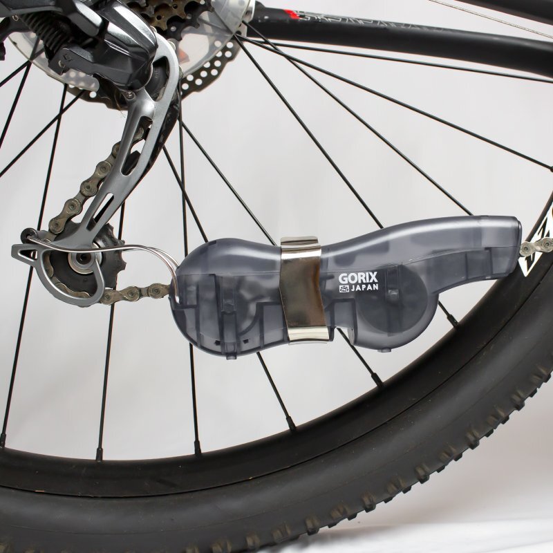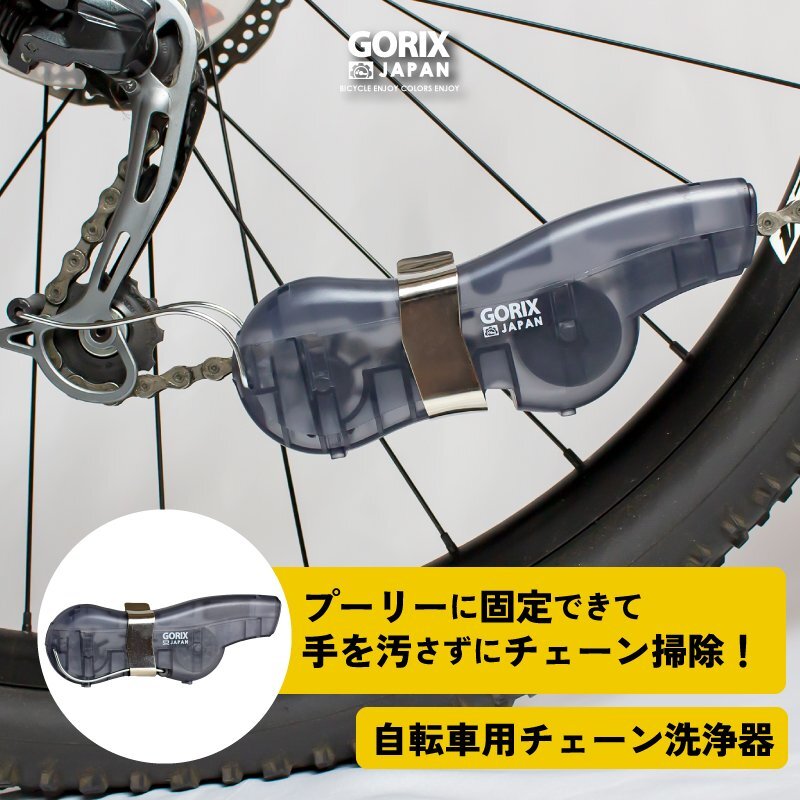 ロードバイク・マウンテンバイク・クロスバイクのメンテナンスに最適なチェーンクリーナーです。 本体内には回転する48本のブラシを内蔵。チェーンの動きに合わせて上下左右から汚れをかき出します。 洗浄液を本体内に注ぎプーリーケージに掛けフタを閉めて、スチール帯をしたら準備完了です。 クランクを回すだけで洗浄液のしみこんだブラシがチェーンをゴシゴシと洗います。 使用後はブラシを水ですすぎ、乾燥させておけば繰り返し使用することができます。 極力手を汚さずに行えるチェーン洗浄です。 ※チェーン洗浄を終えたら最後に必ずチェーンオイルを挿して下さい。 このチェーンクリーナー洗浄機の特徴は ・洗浄機を持たずに使える(プーリーケージに掛けれる) ・少ない量の洗浄液で使える。(約30ml) ・回転ブラシが48本(ゴシゴシ汚れを落とす) ・出口に樹脂製スクレイパーを配置されていてサイドの汚れもしっかり落ちる。 商品内容チェーンクリーナー洗浄機 材質ABS、スチール サイズW18×H6×D2.5cm | |