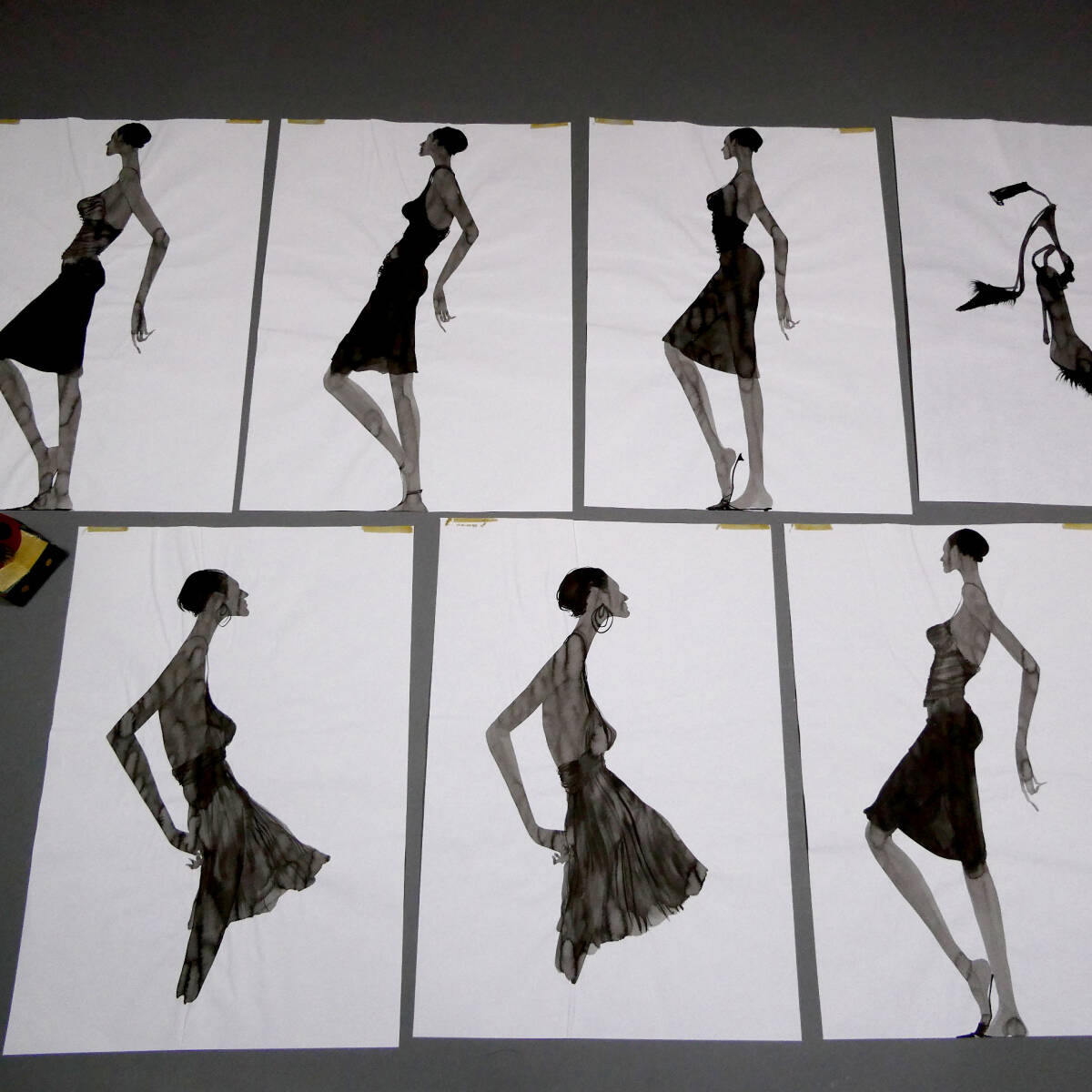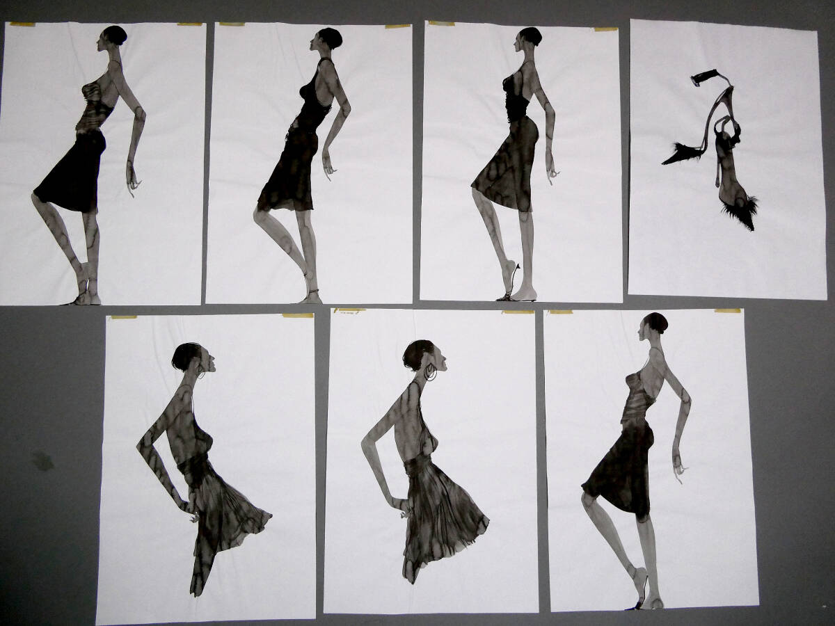 ■ 緒方環 自筆肉筆 真作 《SUMIGA/墨画》 原画7点セット Tamaki Ogata 直筆原画 モード画 一括出品 ■