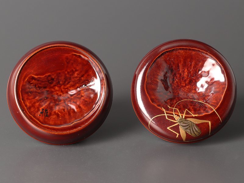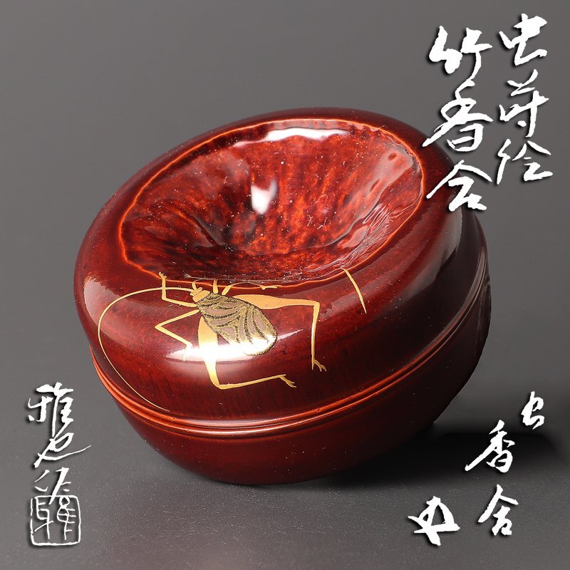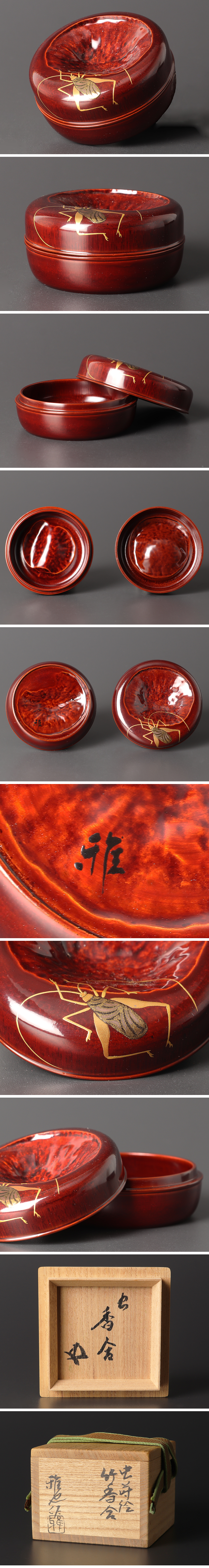 | 【古美味】三代鈴木表朔(鈴木雅也)作『鵬雲斎書付』虫蒔絵 竹香合 茶道具 保証品 |