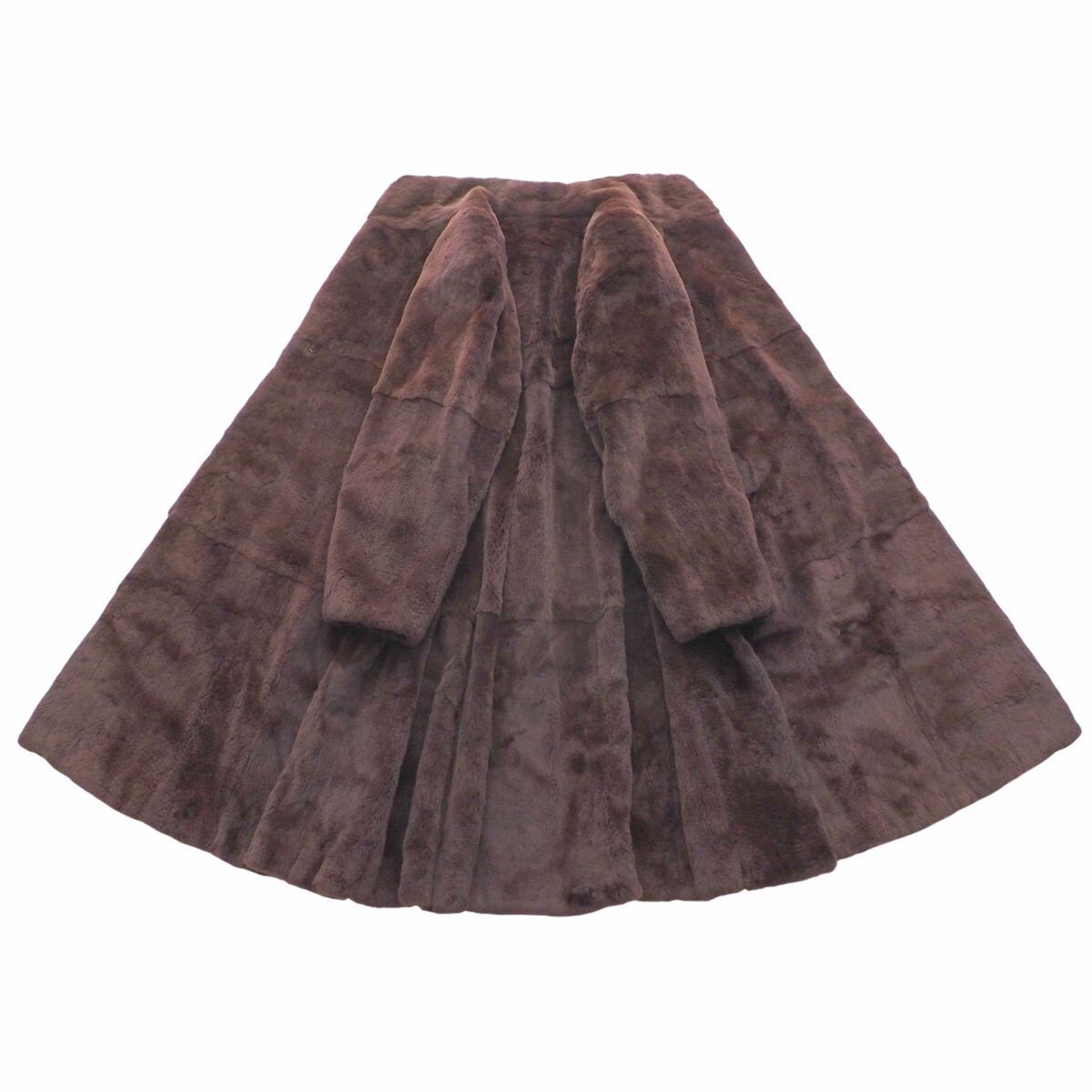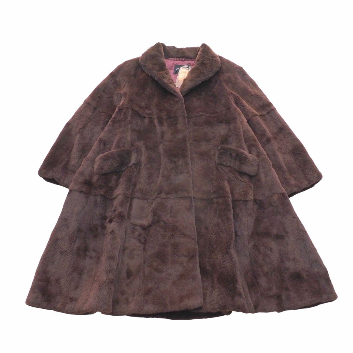 | GS4744◇accent シェアード ウィーゼル フレアコート ファーコート ロング丈 毛皮コート ワインブラウン系 L-XL相当 着丈約101cm | |||
