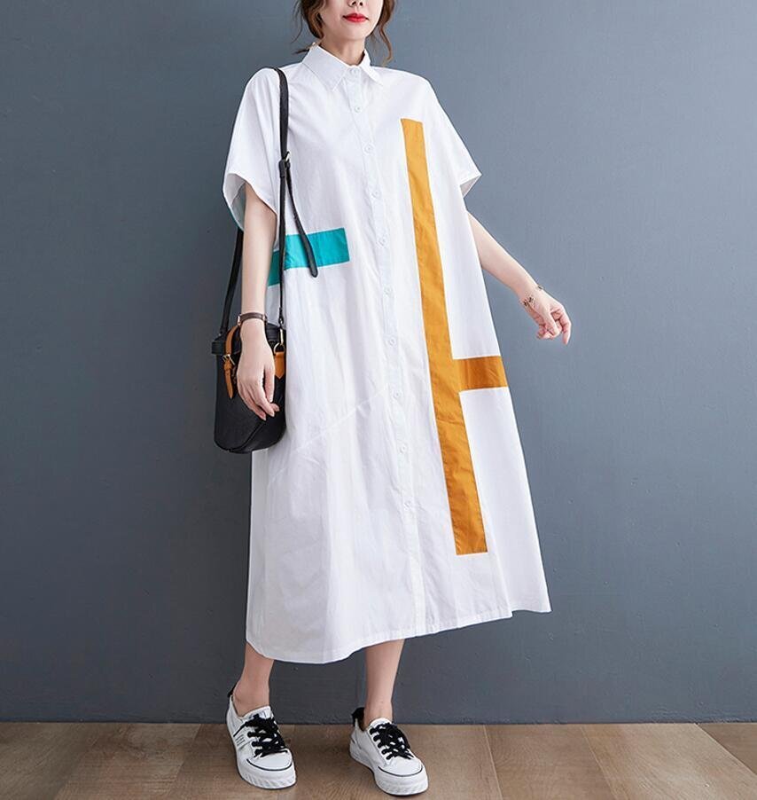 夏新品 ロングワンピース シャツワンピ レディース 大人可愛い 森ガール体型カバー 半袖 大きいサイズ★白/XLサイズ [浏览原始页面]