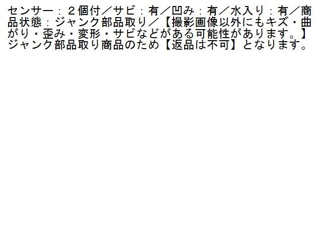 | 商品情報 | センサー:2個付/サビ:有/凹み:有/水入り:有/商品状態:ジャンク部品取り/【撮影画像以外にもキズ・曲がり・歪み・変形・サビなどがある可能性があります。】 | ||
