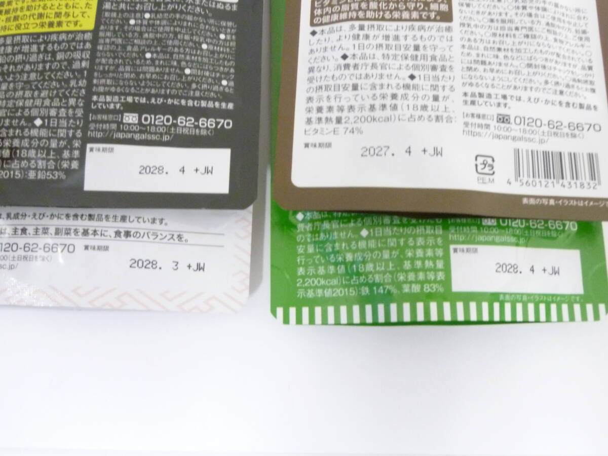 | 【商品情報】 ジャパンギャルズSC 4袋まとめ ・醗酵黒にんにく+セサミン 90粒 賞味期限:2028.4 ・スッポン with コラーゲン 90粒 賞味期限:2028.3 ・プレミアム ナットウキナーゼ + DHA & EPA 90粒 賞味期限:2027.4 ・おいしいおてがるサプリ 鉄×葉酸 150粒 賞味期限:2028.4 *画像での確認お願いいたします。 【商品状態】 未開封品です。 ご理解ご納得いただける方のみご入札お願い致します。 キズや汚れに関しましては、個人差がございますので 画像の確認をお願いします。 完品お求めの方、神経質な方は入札ご遠慮くださいませ。 【付属品】 なし 本商品はレターパックに直接入れて発送致します。 ご了承ください。 XXX | |