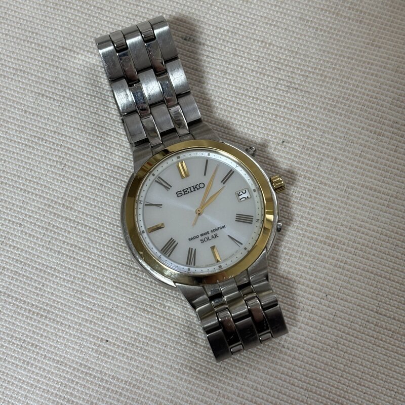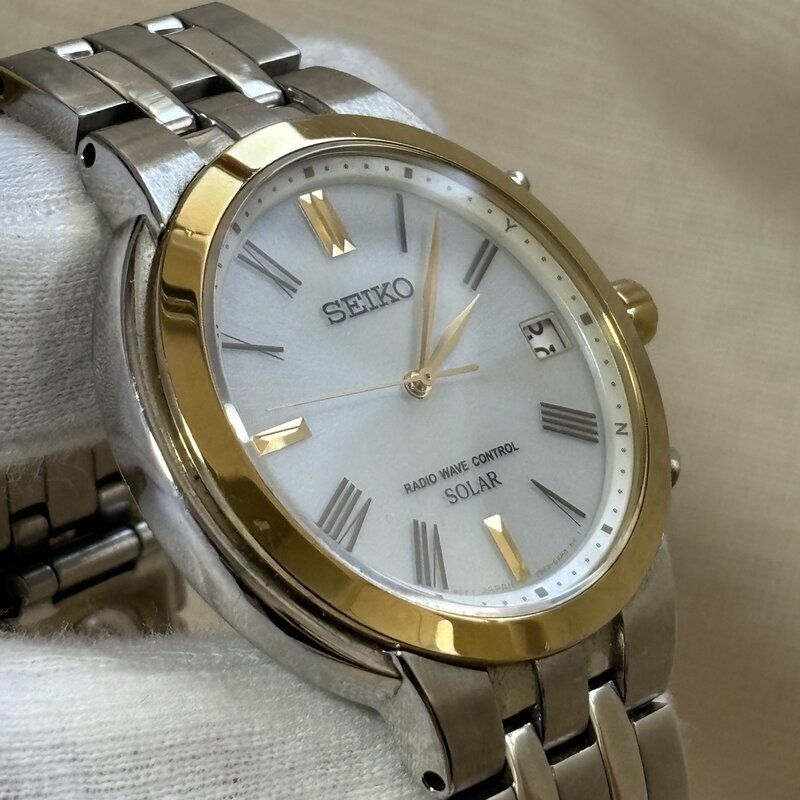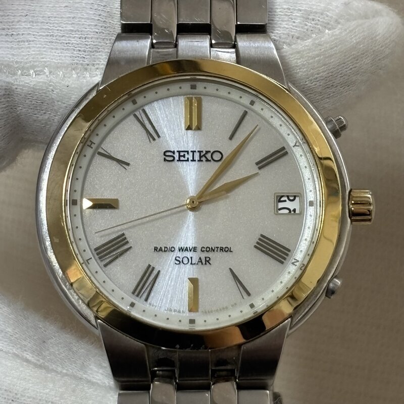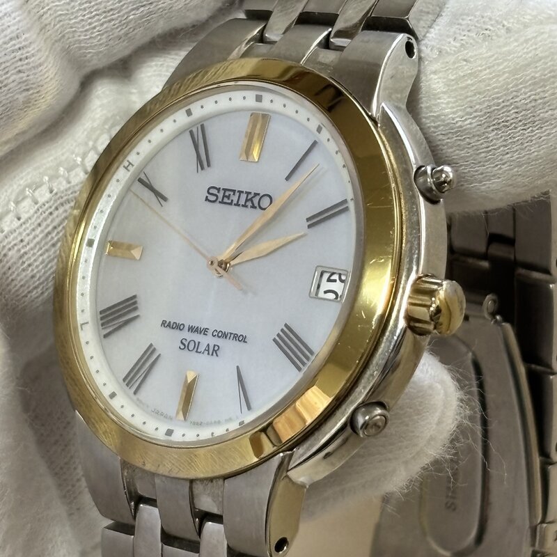 1円~ SEIKO SOLAR セイコー ソーラー 電波ソーラー 7B52-OAH0 ラジオ ウェブコントロール メンズ腕時計 GOLD コンビ IW511BT10SKASLR//