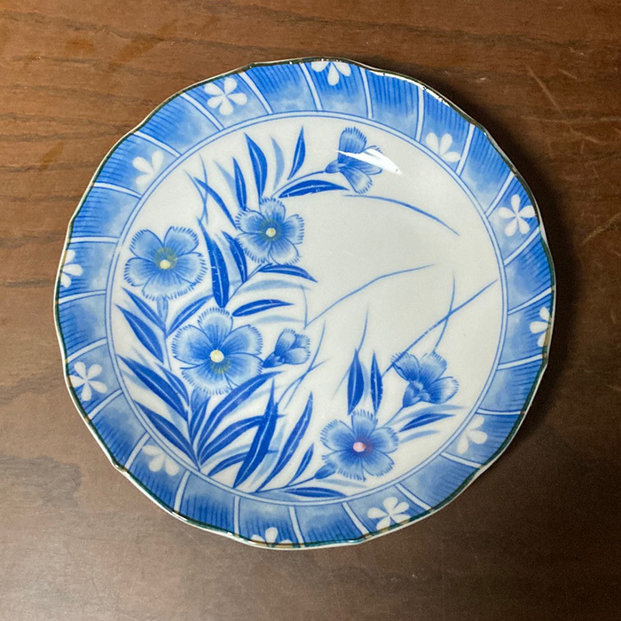 青い花柄の波形皿、シンプルで美しいデザイン。 直径約16cm 5枚セット 実家をかたずけていて出てきたものです。 - デザイン: 青い花柄の装飾 - 形状: 波形の縁取り - 裏面: 平らな裏面 - 色: 白と青のコントラスト ご覧いただきありがとうございます。 素材...陶磁器/焼物 形...丸皿 アイテム 種類...取皿