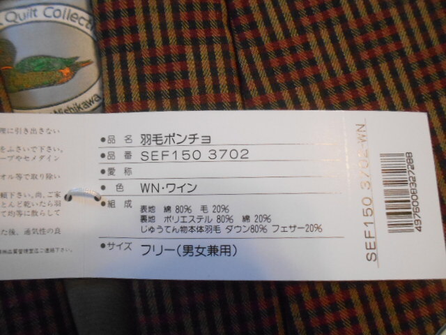 西川◆ダウン80%♪長め丈xシックなお色味の羽毛ポンチョ フリーサイズ 未使用品 | |||