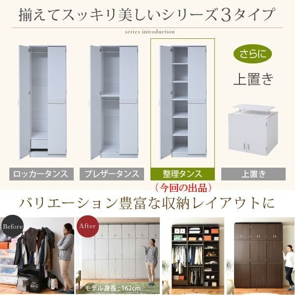 | 洋服タンスとしても、日用品の収納としても幅広く使える整理タンス。 自由に高さが変えられる可動棚が4枚ついているので、収納物に合わせた収納ができます。 |