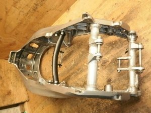 | ■商品説明■ 販売証明書有り、 アルミキャストのツインスパーフレームです。 傷・錆あります。目視上曲がりありません。 ハンドルストッパーに傷もなく、上下ベアリングレースもボール跡薄いです。 エンジンハンガーやスイングアームピボットも変形等なく、各小ステーやネジ類もしっかりしています。 【保管状況により錆や傷が写真より進行している場合がございます。その際は発送前にご連絡いたします。】 ----------------------------- アイラブモーター RS125S/アプリリア/Aprilia【】 |