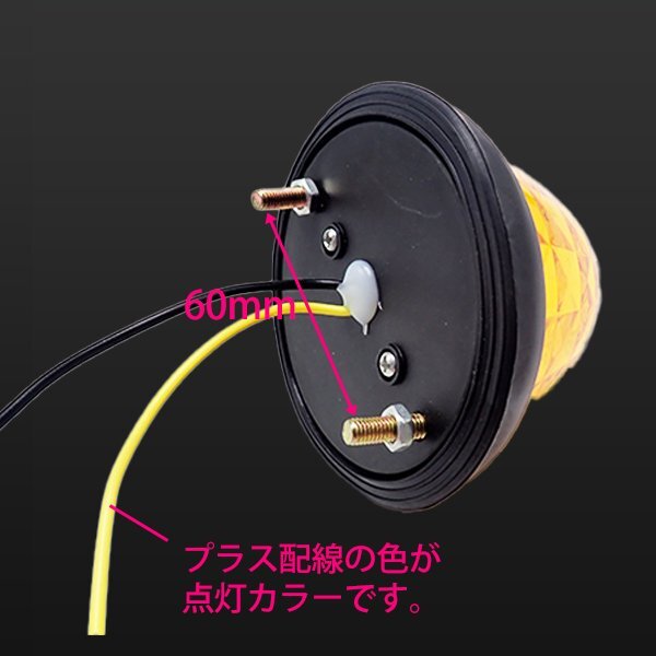 | 16個のLEDをクリスタルカットレンズが効果的に拡散し美しく輝きます。 従来の球タイプに比べ高輝度なLEDで、長寿命、低消費電力、デザイン性と機能性を両立しました。 ■発光カラー:イエロー ■LED:16連SMD ■レンズ:クリスタルカットレンズ(ABS樹脂) ■サイズ:高さ73mm×下部直径85mm(ゴムリング含む) ■電圧:24V仕様(12Vでも使用できますが光量が落ちます) ■配線部分水漏れ加工をしています ※配線部の防水コーティングにより、耐久性及び防水性の向上は期待できますが、 完全防水では御座いませんので、必要に応じ防水処理を施してください。