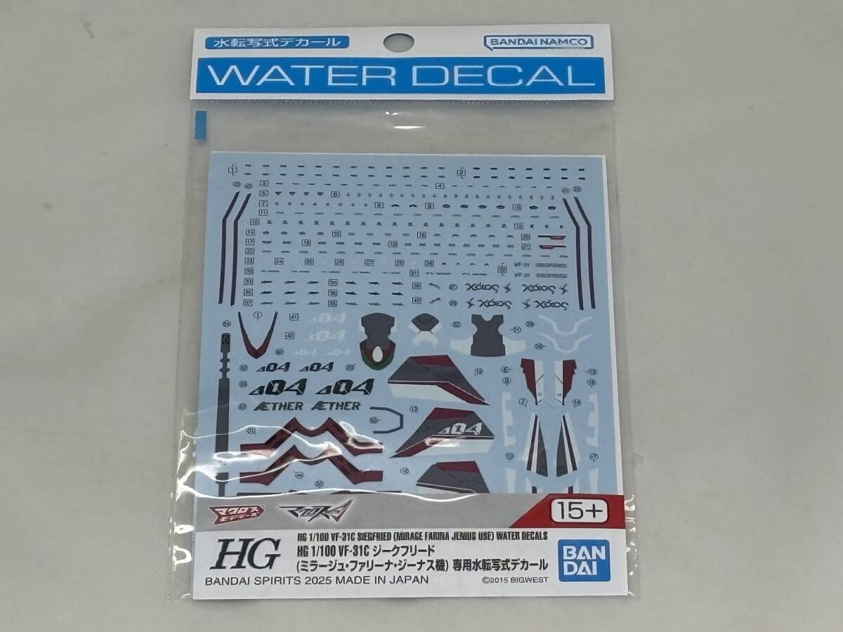 | 商品説明 | 1/100 HG VF-31C ジークフリード(ミラージュ・ファリーナ・ジーナス機) 専用水転写デカール 2点共新品ですが 外箱の曲がりがあります(写真参照) ご了承の上、ご入札下さい ノークレームで宜しくお願いします 送料無料です |
