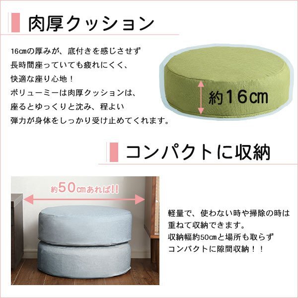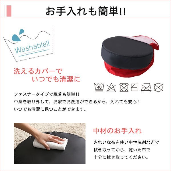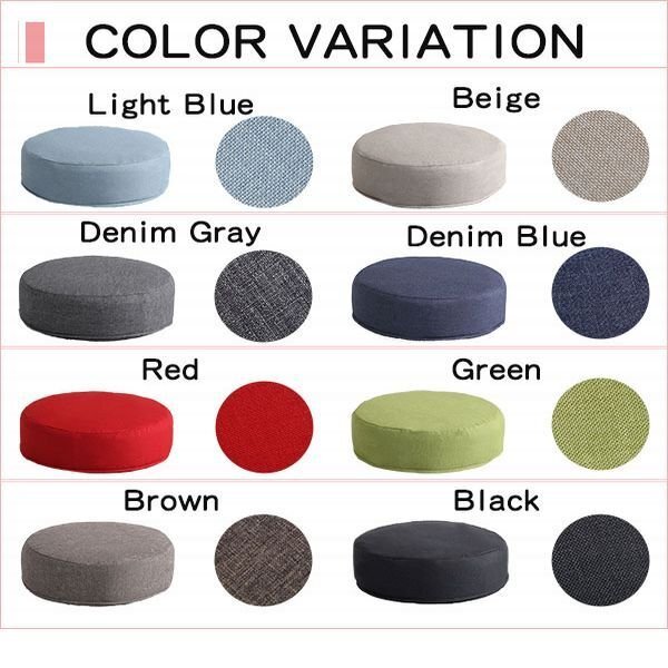 | 【カラー】 ベージュ、ブラック、ブルー、ブラウン、グリーン、グレー、ライトブルー、レッド 【サイズ】 直径48xH16cm 【重量】 1.5kg 【素材】 中材:ウレタンフォーム カバー:表地ポリエステル100% 裏地ポリエステル100% 【梱包】 サイズ:W16xD50xH50cm、重量:2kg 【その他】 日本製(カバーは中国製) 【完成品】 カバーはお客様取り付けです。 【ご注意】 ・サイズ、重量は概算です。 ・商品カラーはご使用のモニターによって実際の明るさや色と異なって見える場合がございます。 |