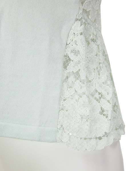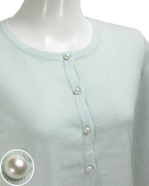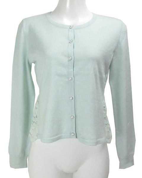| 後身頃がレースの上品なカーディガン。優しいグリーンにパールボタンがきれい目スタイルにあわせて頂けます。ボトムスを選ばず、色を変えてあると便利なアイテムです。 |