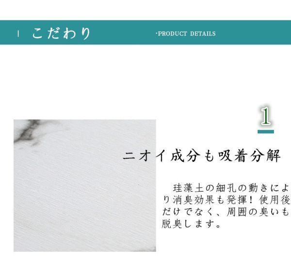 珪藻土の細孔作用で消臭効果を発揮します。 洗面所だけではなく、トイレや玄関、押し入れなどで脱臭・湿度を調整してくれて大活躍!!
