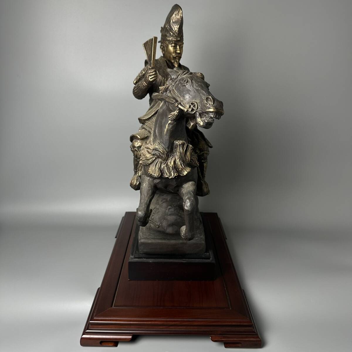 | コレクター買取品 彫刻家 月形那比古 造 【大内公馬を展望】 ブロンズ 青銅器 木製台座付 細密彫刻 在銘 共箱 証明書付 飾物 置物 時代物 |