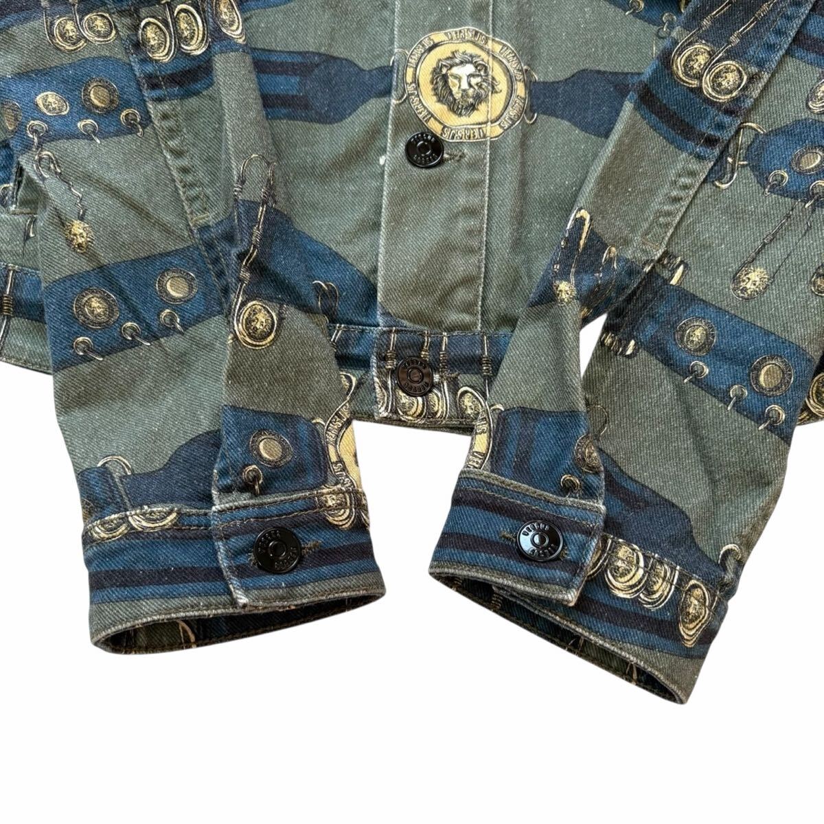 VERSACE(ヴェルサーチェ)のディフュージョンライン、VERSUS VERSACE (ヴェルサス・ヴェルサーチェ) のデニムジャケットです。ヴェルサーチェのアイコニックなモチーフであるバロック調のベルト、バックル、そしてライオンヘッドを全面にプリントした、非常にエネルギッシュでラグジュアリーなデザインが魅力です。ボディカラーのオリーブグリーンとプリントのコントラストが、強い存在感を放ちます。| 出价者 | 信用 | 价格 | 时间 |