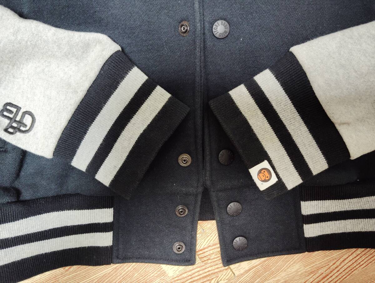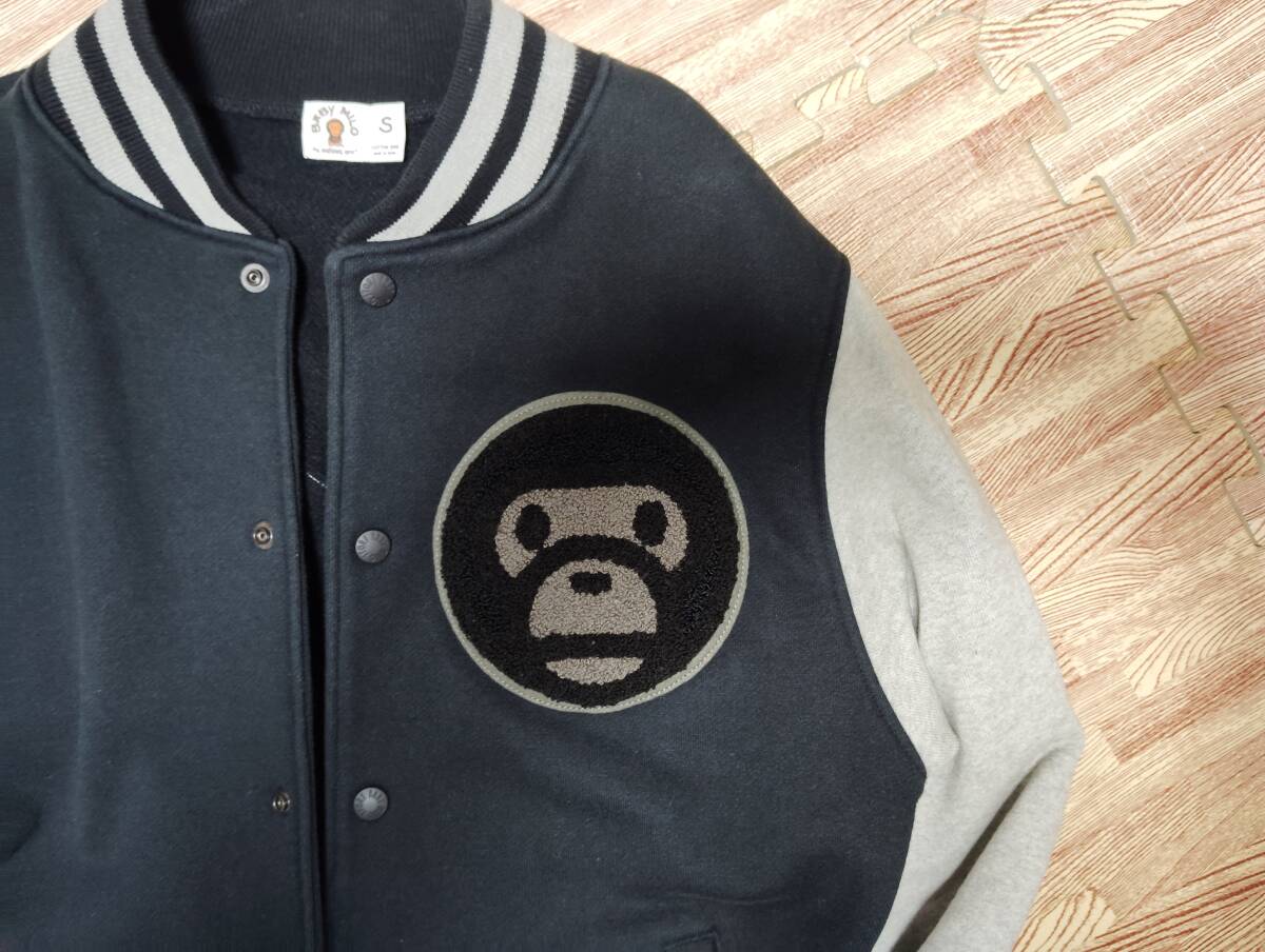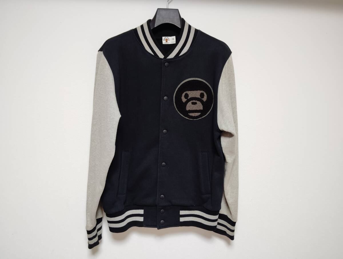 BABY MILO バナナジャケット スウェットスタジャン a bathing ape BAPE マイロ バナナ ロゴ スウェットスタジャン ブラック × グレー Sサイズ| 出价者 | 信用 | 价格 | 时间 |