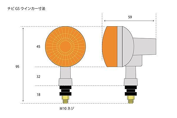 汎用のGS純正タイプウインカーの小型バージョンです。 ちょうど良い大きさでいろいろな車両に似合いそうです。 ステーが一体型ですぐに取り付け可能です。 プラスチック製。 【サイズ】 レンズ直径 約45ミリ *電球も付属していますが、オマケとお考えください(12V/10W)。 *海外市場仕入れの輸入品につき小キズがある場合がございます。 セット内容:ウインカー本体4個 配線:2本タイプ |