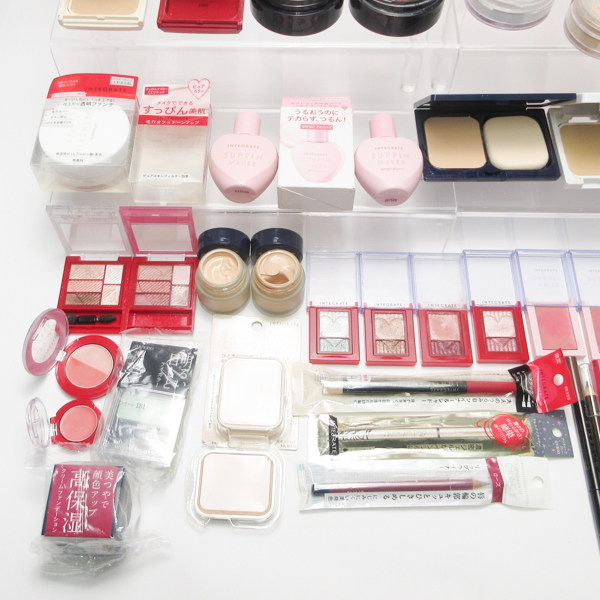 | 資生堂 インテグレート クレイシィ アイシャドゥ 口紅 チーク 化粧下地 マスカラ ファンデーション リップライナー 等約80点セット 【セット内容】 ・モイストクリーム ファンデーション オークル10 25g 未開封 ・プロフィ二ッシュファンデーション オークル20 レフィル 未使用 ・プロフィ二ッシュファンデーション オークル20 レフィル 未開封 ・キラーウインクジェルライナー GY800 未開封 ・イノセントライナー BK999 未開封 ・リップライナーペンシル ローズ634 未開封 ・アイカラー グリーン181 未開封 ・プロフィ二ッシュファンデーション オークル20 9割程度 ・すっぴんメイカーパウダー 9割程度 ・トリプルレシピアイズ RD706 全体的に9割程度 ・トリプルレシピアイズ PK704 全体的に9割程度 2点 ・すっぴんメイカーチークリップ PK322 9割程度 ・ワイドルックアイズ WT974 9割程度 ※新品、中古品を混じっておりますので、ご理解のある方でお願いします。 ※写真に×のブラシはございません。 ※お写真に写っている物が全てになります、上記記載商品は一部になります。 お得なセットになっております。この機会に是非お試し下さい♪ 下記記載事項を必ず最後までご覧下さい。 そちらをご理解頂いた方のみの入札でお願い致します。 | ||