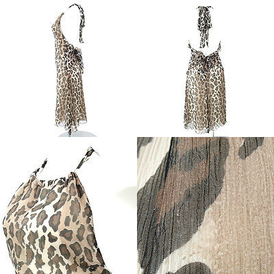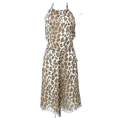 | パーッティーシーンに☆お洒落なレオパード柄ワンピ♪ ホルターでデザインで大人セクシーに決まる一枚。 軽くて肌触りの良いシルクを使用し、シアーな透け感がお愉しみ頂けます。 サイドにあしらわれた生地は前後どちらにも結ぶことができるので ウエストのワンポイントにしてもOK! 透け感のある素材ですのでインナーの着用をおすすめ致します。 目立ったダメージ・汚れはございません。 着丈約103㎝(ネック紐除く) バスト約80㎝ ウエスト約62cm ヒップ約100cm 【サイズ】:(I40) 【素 材】:(シルク100%) 【 色 】:(ベージュ) 【程 度】:(A) **** 12140828-003 124 031 | ||||