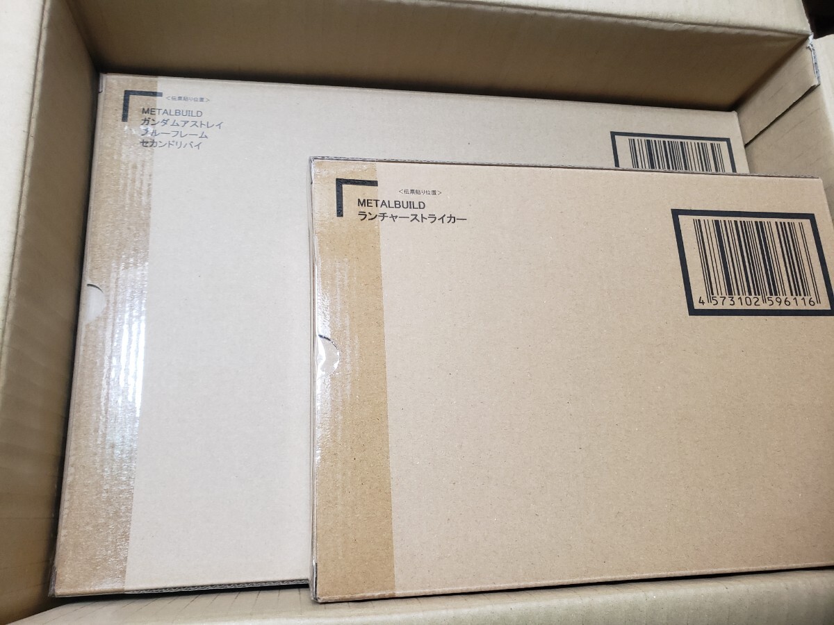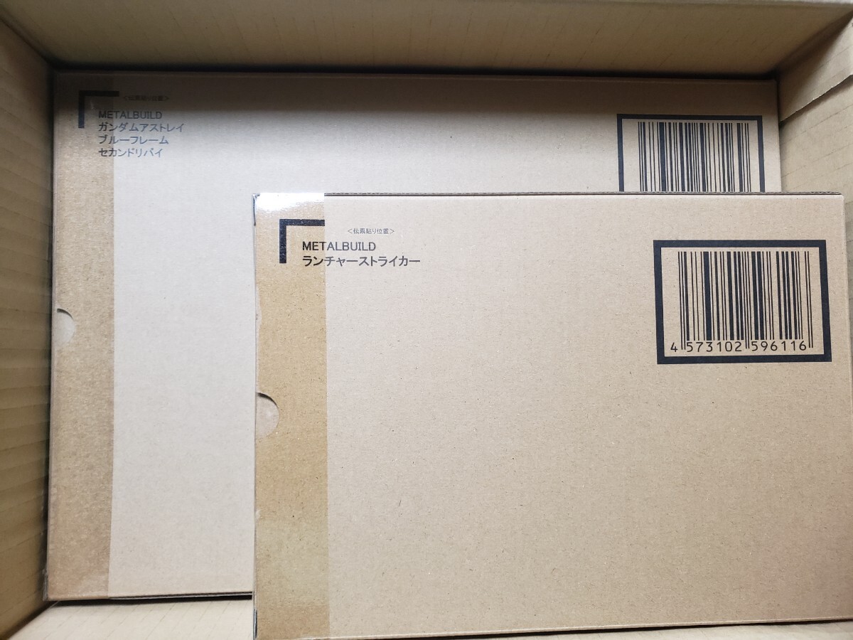 どちらも輸送箱も未開封の状態です。プレバンでは同梱購入しているので伝票跡もはじめからございません。