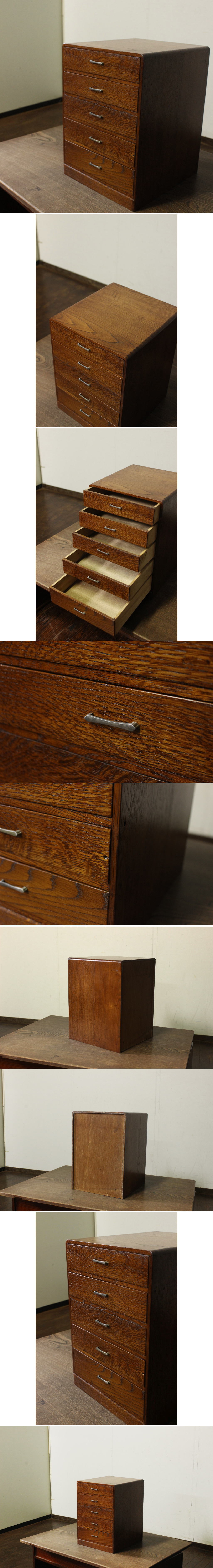 | 商品紹介 | 昔の引出し収納です。 使い込まれた良い雰囲気を醸し出しているのでしょうか。 シンプルな5杯の収納、レトロな雰囲気十分で、 楢材の鮮やかな杢目が素敵です。 サイズも良いので様々に活用出来るのではないでしょうか。 |