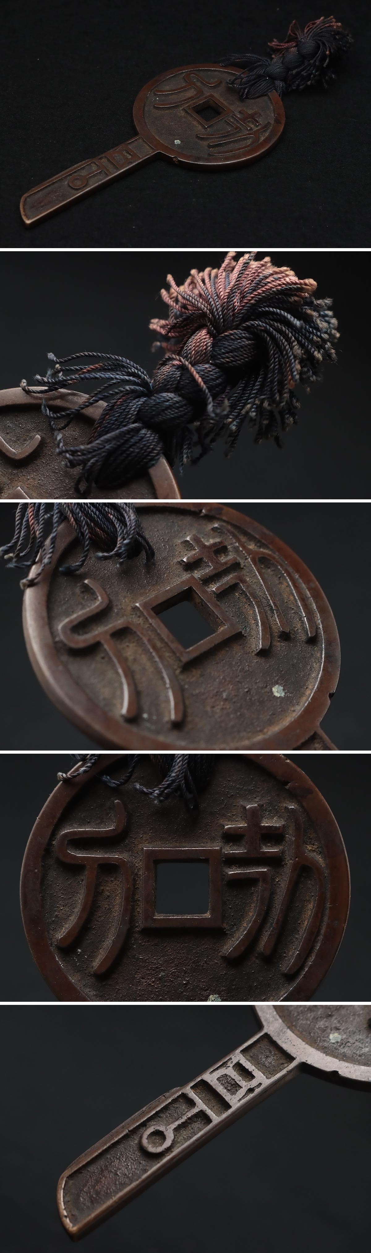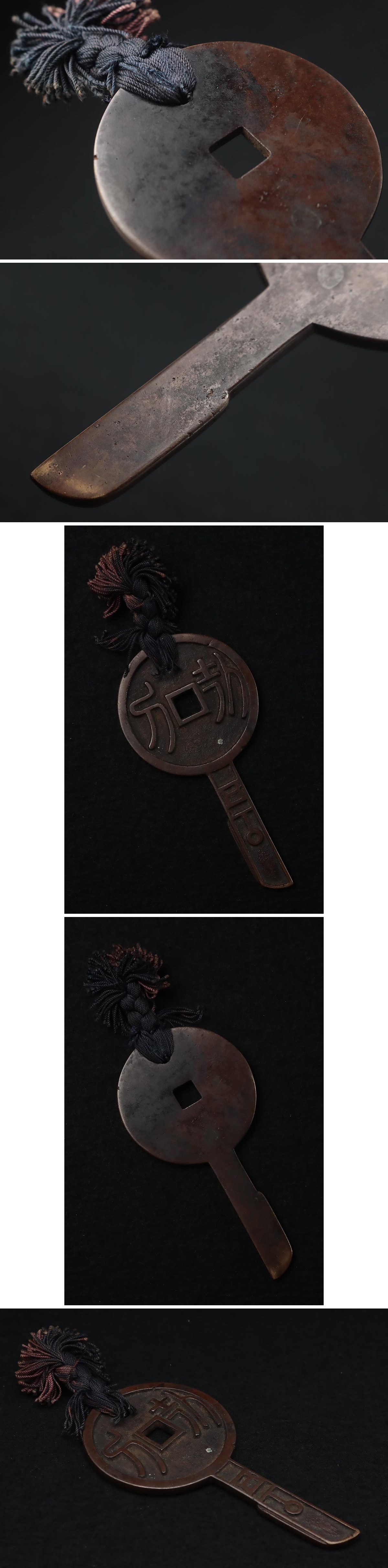 | ◆ 時代金工 中国古銭 刀幣 根付 縦11.5cm・倣古銭根付 提げ物 提物 中国古玩 古美術 ◆