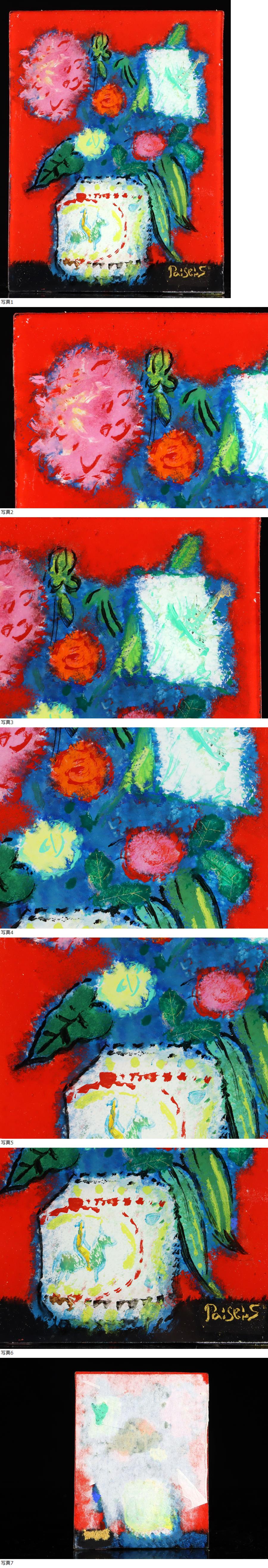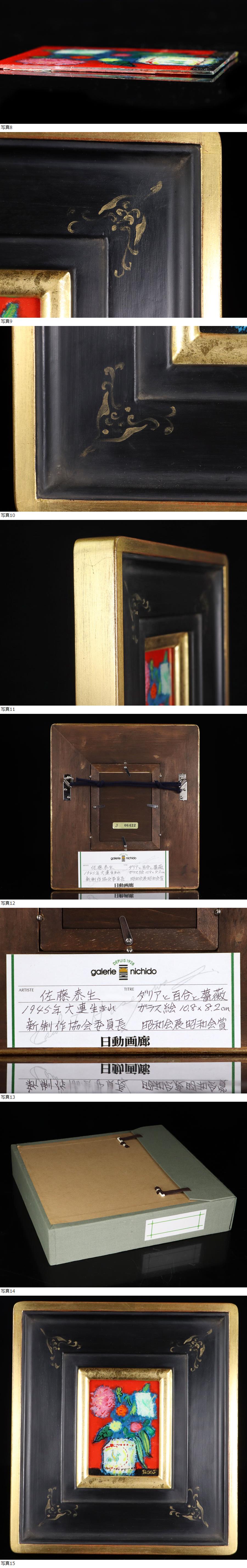 サイズ(約) 額:縦 26.5㎝/横 23.5㎝/幅 3㎝ 画:縦 10.8㎝/横 8.2㎝ 付属品 黄袋・タトウ箱 真作保証 佐藤泰生「ダリアと百合と薔薇」肉筆 油彩 ガラス絵 日動画廊取扱 年鑑作家 タトウ箱 佐藤泰生 1945年 満州・大連出身 1967年 東京芸術大学油絵科卒業(小磯教室)、大橋賞受賞 1970年 新制作展新作家賞(同79年、以降毎回出品) 1971年 現代日本美術展入選 1977年 昭和会展昭和会賞受賞 1978年 個展開催(銀座・日動サロン) 1979年 新制作展新作家賞受賞、安井賞展出品(同80~83年) 1980年 新制作協会会員 1981年 東京セントラル美術館油絵大賞展優秀賞受賞 1984年 個展開催(日動サロン、日動画廊本店、名古屋日動画廊 1992年 屏風絵展開催(日動画廊) 1998年 日本秀作美術展、現代の精鋭作家たち展出品 1999年 個展開催「油彩画とガラス絵展」(東京・名古屋・福岡、日動画廊) 2002年 個展開催(東京・名古屋・福岡、日動画廊) 2005年 個展開催(日動画廊) 2007年 『佐藤泰生の世界展 - 1963~2007』を諏訪市美術館で開催 2009年 高島屋(東京・大阪・名古屋・横浜)で個展を開催 2015年 佐藤泰生和光大学退職記念展開催 新制作協会会員、和光大学芸術科名誉教授 佐藤泰生「ダリアと百合と薔薇」でございます。 油彩ガラス絵です。 大変貴重な作品となっております。 状態良品です。画像でご確認ください。 |