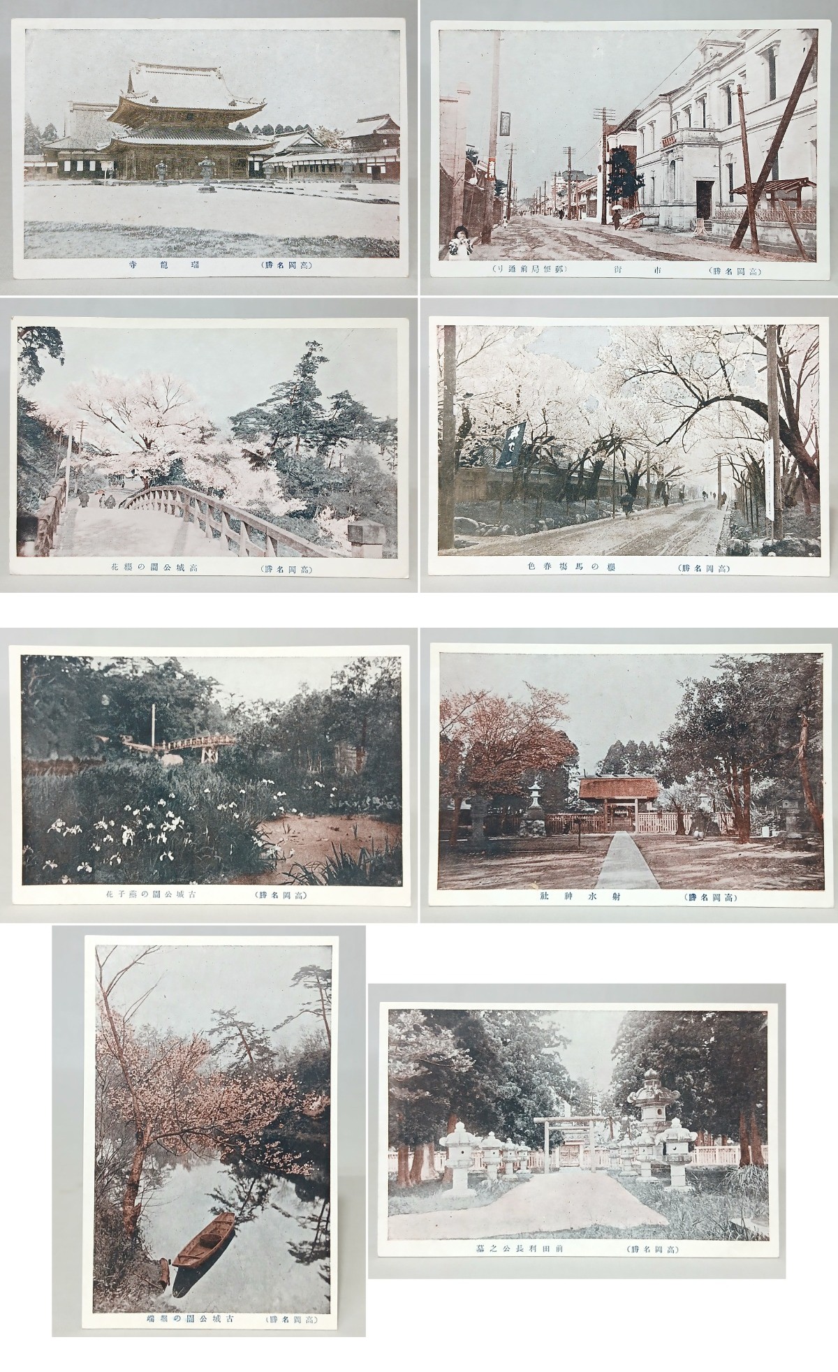 【戦前・絵葉書】 富山 高岡名勝 8枚 瑞龍寺 高城公園 古城公園 射水神社 郵便局前通り // 古写真 資料◆富山県