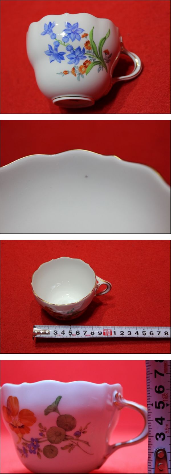 | ■□■□■ ご覧頂き誠にありがとうございます ■□■□■ マイセン ベーシックフラワーシリーズ カップ&ソーサー 3客 です。 箱無し。中古品となります。使用に伴う汚れ等ございます。 1客カップ内側に黒い点の染みがあります。 モニターによっては見え方に違いがある場合もあります。 状態は写真にてご確認ください。 [重量] 約1.0kg [サイズ] 高さ 約19㎝ 幅 約23㎝ 奥行 約23㎝ [梱包時サイズ] 80サイズ(佐川急便) ※最少の梱包を心掛けておりますが、商品の安全の重要性により、 サイズが変わる事が御座います。予めご了承ください。 ※中古品であること、現状販売であることをご理解いただける方のみ 御入札をお願い致します。 ※個人保管・経年による汚れ、傷等が見られます。 ※当方専門知識がない為、質問にはお答えできない場合が御座います。 ※知識不足によるカテゴリ違いがある場合が御座います。予めご了承くださいませ。 【商品状態の目安】 B S…新品または未使用品 A…中古品 未使用品に近い物(非常に状態の良い物) B…中古品 目立った傷や汚れ無し C…中古品 やや傷や汚れが有り D…中古品 傷や汚れなどが有り使用感の有る物 E…中古品 全体的に状態が悪い物 F…中古品 ジャンク品(状態は写真にてご確認をお願いします) ※最少の梱包を心掛けておりますが、商品の安全の重要性により、サイズが変わる事が御座います。予めご了承ください。 ※画像は現物を撮影しておりますが、照度、遮光、モニターによっては実物と色目が異なって見えることがありますのでご注意ください。 ※写真に写っているものが商品全てとなります、御注意下さい。 【評価について】 基本的に当方から評価は致しません。 ※評価ご希望の方は、「受け取り連絡」を頂いた後、取引ナビにてご連絡ください。 | ||