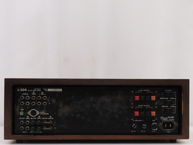 ■メーカー : LUXMAN ■型番 : L-504 ■外径寸法 : W450×H160×D268mm ■重量 : 10kg 【商品の状態 当店での確認内容】 動作確認をしたところ、スピーカー出力/右側ヘッドフォンから出音が確認出来ません。また、DECK-1 MONI入力にノイズがございます。 電源ケーブルに被覆破れがある為使用できません。 ※上記により【難あり商品】としての出品となります。 「商品の状態」に関しましては当方主観の目安となります。外観などは中古品で個人差もありますので詳細は画像にてご判断ください。 画像にて不明な点はご質問下さい。 出品商品は画像のものですべてになります。画像に写っているもの以外は付属いたしません。 【送料 全国一律 2,080 円 沖縄、離島は別途お見積り】 ※送料がお得になるサービスです(下取りシステムのご案内です) ストア決済利用時にクレジットカードやPayPay残高/PayPayクレジットを利用の方は留意点がございますのでこちらを参照上ご利用ください。 当ストアでは商品を安全にお届け出来るよう提携運送会社と協議の上、発泡緩衝材や強度段ボールの使用等 運送会社が指定する梱包方法や資材を採用しております。 より安全にお届け出来るよう商品仕様により梱包サイズが大きくなる場合や個口数が増える事がございます。 【当ストアオークションルールを入札前に必ずご確認ください。】 【落札後の取引手順】 ・落札後は取引ナビにて、必要事項をご入力後、送信ください。 取引終了後48時間(土、日は除く)以内に入力をお願い致します。 ※ご連絡が頂けない場合は落札者様都合でのキャンセルとさせていただきます。 ・落札代金(商品代金+消費税+送料)の入金をお願い致します。 ※大型商品の場合は送料確定後の決済となる為取引ナビを入力頂き、当ストアより送料のご案内が来るまでお待ちください。(土曜、日曜、祝日の場合は翌営業日より順次ご案内いたします) ・お支払い方法はクレジットカード/PayPay残高/PayPayクレジット/PayPay銀行/ゆうちょ銀行のみです。 ※商品代金引換(代引き)のお取り扱いはしておりません。 ※領収証の発行が必要な方はご連絡ください。 ※銀行振込の際の振込手数料はご負担願います。 ・入金確認後に出荷手配を致します。 (原則入金確認後3営業日以内に発送いたしますが、大型や重量のある製品はお時間をいただく場合もございます。) ・発送は当店指定の運送会社の元払いのみでの発送となります。 ※他の運送会社、送料代引き等は致しかねます。 ※落札者様ご自身での運送会社の手配いただく事も可能ですが荷物事故の責任の所在の問題上、梱包は致しかねます。 ※店頭にお越し頂き手渡しも可能(福岡市早良区)です。ご希望の方はご落札後にご連絡下さい。 ・大型/重量物商品の送料につきましては商品の特性上、荷降ろし状況等により送料が大きく前後し運送業者に別途見積りが必要な為、早めのお問い合わせにてお見積り上、入札をお願い致します。 【初期不良の保証について】 ・商品到着後の初期動作不良、また配送中の事故による破損、不具合が有る場合は、商品発送後10日以内に当ストアまでご連絡ください。当ストアでは修理での対応を優先させて頂きますが、修理不可の場合は全額返金させて頂きます。 (商品代金+消費税+送料のお支払い頂いた金額となります) 【初期不良の保証の対象外について】 次の場合は保証の対象外となりますのご留意ください ・ジャンク商品、現状商品、難あり商品での出品商品。 ※難あり商品に関しましては動作確認時に一部動作不良が確認された商品になり、記載している動作確認以外にも、動作不良がある可能性もございます。こちらに関しましても保証対象外となりますことをご理解ください。 ・年代物のオーディオなどで、当店にてわからない範囲で部品が交換されている場合 ・楽器類の特殊機材(マイクロスコープ等)での確認までは行っておりません。気になる方は事前にご質問いただくか、入札をお控えください。 ※初期不良に関しましては【商品の状態】に記載のもの、またそれによって起因する動作不良は対象外です。 ※商品発送後10日を過ぎてのご連絡は対応が出来ませんので、商品が到着しましたらお早めに確認をお願い致します。 【メーカー保証の加入・継承】 ・未使用品、展示品やメーカー保証期間が残っている商品に関しまして、メーカー保証の加入、継承が必要な方は、落札後取引ナビ内にて当ストアにお知らせください。商品発送までにご連絡いただけない場合、メーカー保証の手続きを承れない場合があります。 【評価について】 ・評価不要の場合、必ず取引ナビの「要望欄」にてお知らせください。それ以外でご連絡をいただいた場合、対応できない可能性がございます。一度行った評価はシステム上取り消しが行えませんのでご了承ください。 【入札削除・キャンセルについて】 ・入札後はトラブル防止の為いかなる事情がおきましても入札を削除等は致しておりません。 ご検討