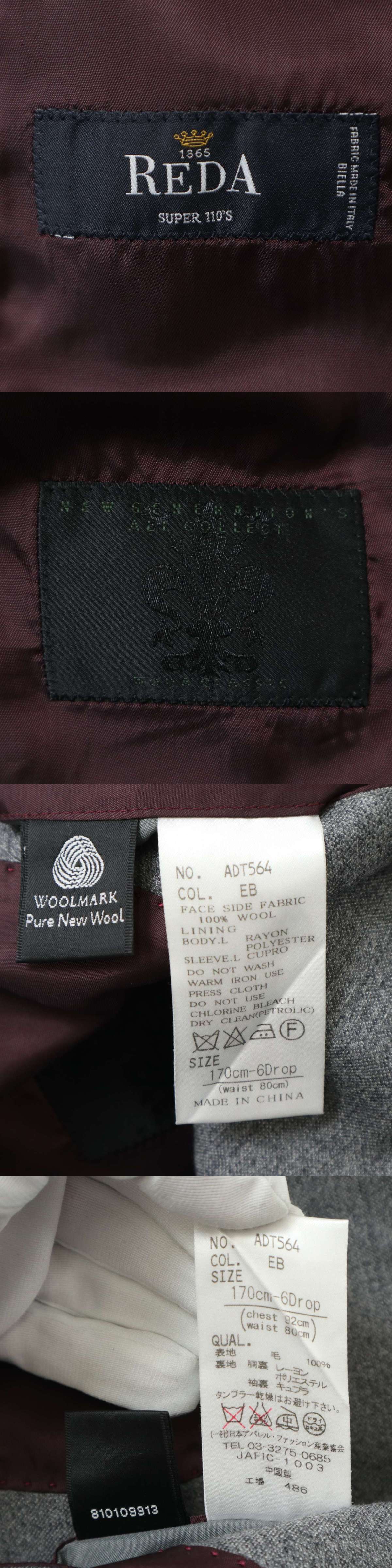 THE SUIT COMPANY スーツカンパニー 総裏 REDA SUPER110’S ウール100%★ テーラード ジャケット Sz.170cm-6Drop メンズ 灰 [浏览原始页面]