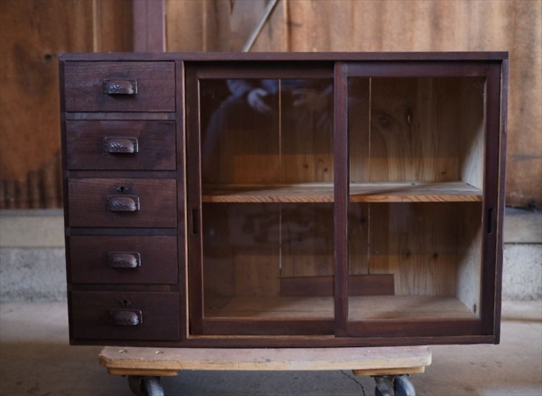 | アンティーク抽斗付のガラスケース 昭和初期 古録展 送料別 Gサイズ 中古 品番S11008 | |