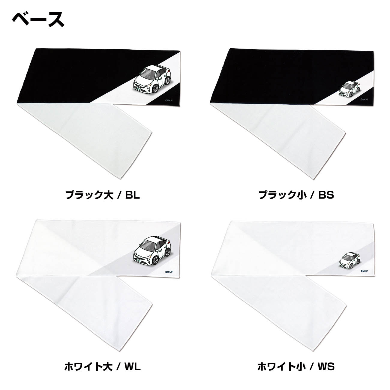 | 好きな車カラーが選択できます。車ボディカラーは16種類。【ホワイト/ブラック/グレー/ゴールド/水色/ピンク/パープル/グリーン/イエロー/ブルー/レッド/オレンジ/ワインレッド/ダークグリーン/グレー/ブラウン】の全16色から選択できます。ベースは【ホワイト大/ブラック大/ホワイト小/ブラック小】の4種類から選択できます。柔らかな質感でイベントやライブ、スポーツ観戦で大活躍のマフラータオル。首に掛けて軽く結んでおけますので走ったり前屈みになったりしてもタオルがずり落ちにくくなっています。 オフ会やカーミーティング・各種カーイベントなどでは、まだ販売していない、愛車と同じデザイン・カラーのカーグッズです。カーミーティングに配布したり、ビンゴゲームの景品にしたりするなど、クラブミーティングでは他にない賞品となります。 フロントバンパーやピラー部分、ルーフ、ドア部分、ヘッドライトサイドミラー・シート・フロントガラスなどボディ細部までデザインしています。ボディーカラーは16色「ホワイト・ブラック・シルバー・ゴールド・水色・ピンク・パープル・グリーン・イエロー・ブルー・レッド・オレンジ」のラインナップとなっています。 車種は、人気車種から旧車まで幅広くラインナップ。【代表車種】トヨタ:プリウス・ヴェルファイア・コペンGR・ランドクルーザー・アクア ホンダ:N-BOX・S660・シビックタイプR・N-VAN・N-WGN マツダ:MAZDA3・デミオ・CX-5・ロードスター・RX-8 ミツビシ:ランサーエボリューション・パジェロ・アウトランダー・デリカ・アイ ニッサン:フェアレディZ・スカイライン・GT-R・ノート・セレナ スバル:インプレッサWRX・フォレスター・レヴォーグ・XV・BRZ スズキ:ラパン・ワゴンR・エブリィワゴン・スイフトスポーツ・ジムニー ダイハツ:ハイゼットトラック・コペン・ムーブ・ムーブキャンバス・タントカスタム 車種によっては、前期・後期共にラインナップしている場合があります。その場合は、商品名に記載されています。前期モデルのみのラインナップや後期モデルのみのラインナップなども場合もあります。 車両に取付けるエンブレムや、キーホルダー・スマホケースなども同シリーズでラインナップしています。【すべて受注生産です】 |