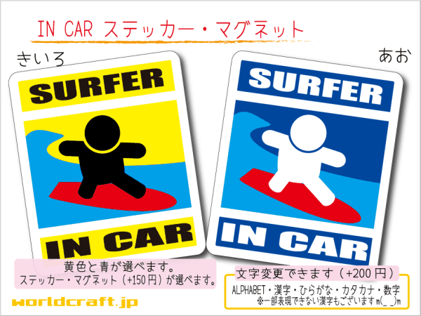 クルマのうしろにペタリとどうぞ!! ●サイズ : 縦 10.5cm × 横 9cm ●枚数 : 1枚 ■ 仕様選択 : ■ カラー選択 : 黄色 / 青 ☆仕様とカラー、それぞれどちらかひとつ お選びください☆ 画像1にはマグネット仕様+150円と書かれていますが、 このたびステッカーと同じ価格になりました☆ 現在マグネット仕様に追加料金はございません 落札後、取引ナビにて ご希望の仕様(ステッカー / マグネット)、ご希望カラー(黄色 / 青) をお知らせくださいませ ★ 耐久性UPしました ★ 耐水・耐候 屋外用塩ビシート仕様 ☆当店だけでしか買えないオリジナルデザイン☆ Made in JAPAN □ □ □ □ □ □ □ □ □ □ □ □ □ □ □ □ □ □ □ BABY IN CAR、BABY on BOARD、CHILD IN CAR、CHILD on BOARDバージョン、その他スノボバージョン、スケボーバージョン、野球バージョンなどなどいろんなバージョンいっぱい取りそろえております☆ ☆その他 出品中の○○ IN CAR ステッカーシリーズ☆ ・BABY IN CARステッカー ・CHILD IN CARステッカー ・○○ IN CARステッカー(大人バージョン) ☆もうひとつのオークションID i306st でも BABY CHILDステッカー出品中☆ BABY ・ CHILD ☆どうぞよろしくお願いいたします☆ ※お休みの連絡などある場合がございますので、ご入札前に必ず自己紹介欄をご覧くださいませ※