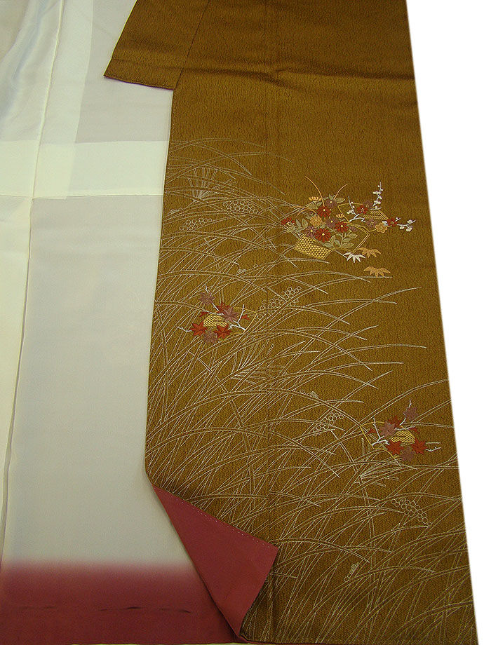 ※紋意匠地に刺繍柄の素敵な附下げ・訪問着です。 装いの場所を選ばない意匠にあらゆるフォーマルシーンに映える楚々とした逸品です。 帯や小物使いで様々な表情をお愉しみ頂けると思います。 パーティーや結婚披露宴、慶事の宴、冠婚祭、社交着等々。 40代~70代迄幅広く着用出来ます。 身長156cm~162cmの貴女に最適です。 |