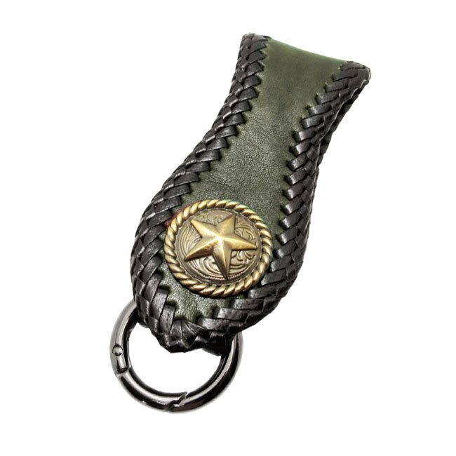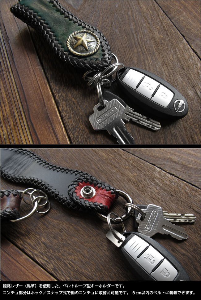 本革 ベルトループ型 キーホルダー グリーン 丸ナスカン キーチェーン コンチョ 馬革 姫路レザー [浏览原始页面]