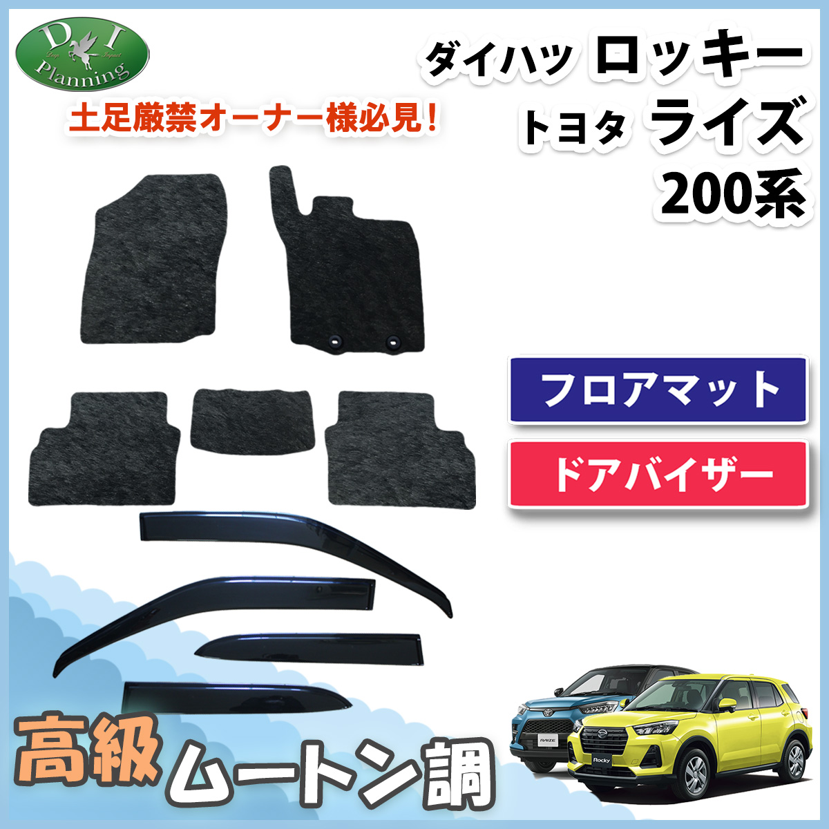 | ■商品構成 | ・フロアマット (運転席/助手席/後部座席部分) ・ドアバイザー 4枚組 | ||||