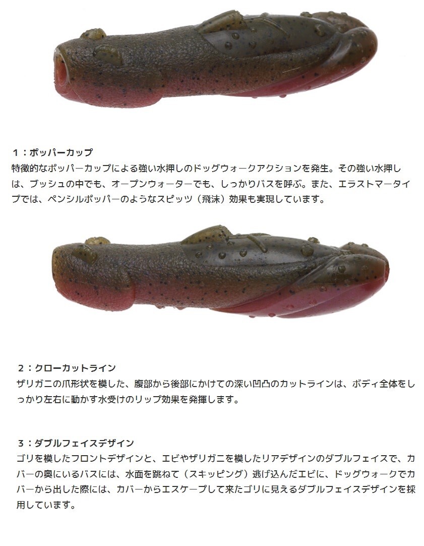 イマカツ スキップドッグ 2.5インチ グリーンパンプキンペッパー #S-14 SKIPDOG 6本入り圧倒的スキップ力と抜群の水中ドッグウォークオールレンジ対応型イモ系ノーシンカーワームベイトタックルで楽々とスキッピングができ、沈めても、浮かせても(※)簡単にドッグウォークアクションができるスキップドッグ。ポッパーカップによる力強い水押しのドッグウォークで、これまでのイモ系ノーシンカーとは一線を画すアクションを実現。カバーの中でも、オープンウォーターにおいても、しっかりバスを呼ぶことができる新たなオールレンジ対応型イモ系ノーシンカーワームです。■日本郵便クリックポスト:ポスト投函でのお届け(日時指定不可、未着・破損の保証無)