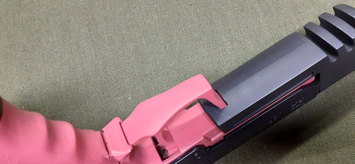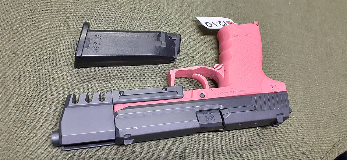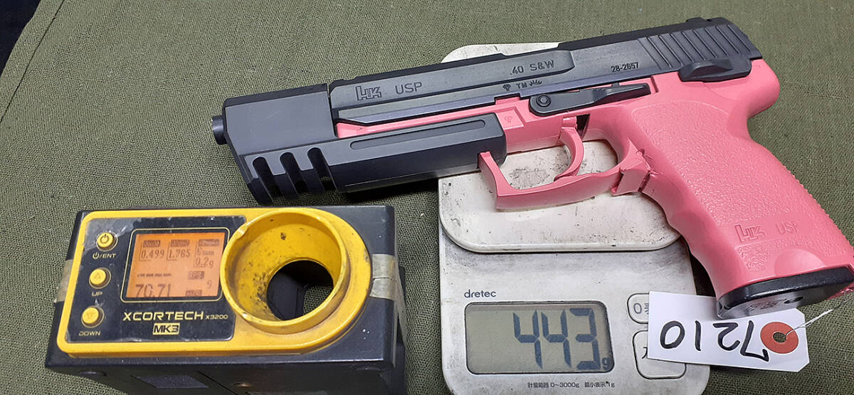 マルイコッキングエアガンにGTF強化スプリング(2000円で単品販売中)と宮川GTFパッキン(宮川ゴム工業様との共同開発ホップパッキンです)を組み込み、下地処理後に外装を金属粒子含有塗料でエアブラシ塗装したカスタム品です。いつも通りの内容です。
