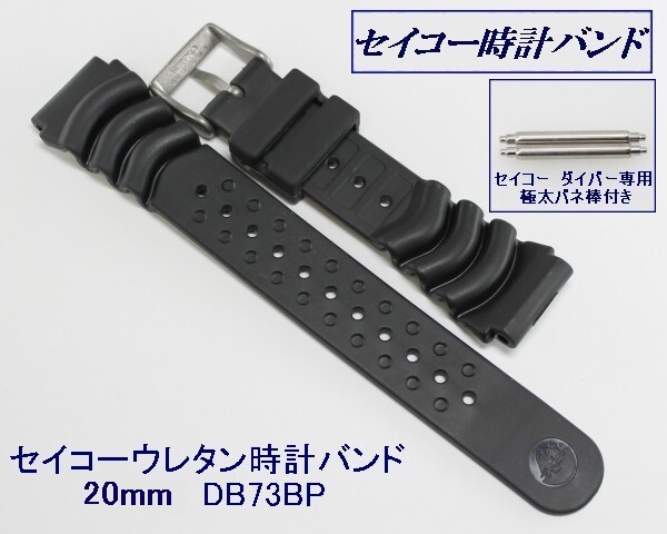 | メーカー商品名:セイコーウレタンバンドダイバー用 品番:DB73BP メーカー希望小売価格:3,850円(消費税込み) バネ棒はオープン価格 かん幅:20mm 美錠幅:18mm 厚み:約3.0mm 長さ:12時側約8cm(尾錠含まず)6時側:約14cm 色:黒色 バンド材質:ウレタンバンド 美錠材質:ステンレス(鏡面仕上げ)(裏面にSEIKOのロゴあり) 12時側:SEIKOのロゴあり バンド材質:ウレタンバンド 新品、(セイコー正規品) |