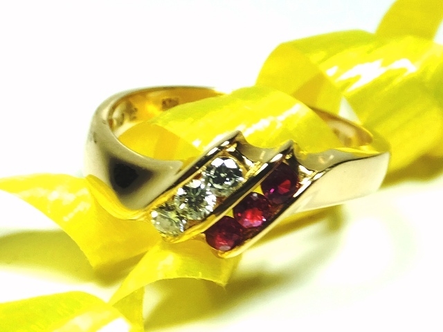 K18金 YG イエロー ゴールド ルビー、 ダイヤモンドがシンプルに並んだ 大人 女子 人気、上質 ピンキーリング、小指も 素敵に! 【ルビー】 ・情熱カラーの赤色ルビーは、着ける人を魅力的に輝かせてくれます。 ・魔除けの宝石、持つ人の生涯を守ってくれると中世より伝えられています。 ・7月 の誕生石 ・おひつじ座(3/21~4/20)の星座石 ・しし座(7/24~8/23)の星座石 ・結婚15周年 の記念日宝石 ■ご自分や大切な方の誕生石や星座石を身に着けていると 幸運パワーが得られる、お守り・守護宝石と言われています。 ◆詳細◆ ・使用宝石/ダイヤモンド(ラウンド カット)0.10 ct(刻印有り)約 2.0 ㎜ 3石 ・使用宝石/ルビー(ラウンド カット)0.12 ct(刻印有り)約 2.0 ㎜ 3石 ・リング 上部 サイズ / 約 幅 7.0 ㎜ 厚み 2.7 ㎜ ・リング 下部 サイズ / 約 幅 2.0 ㎜ 厚み 1.0 ㎜ ・金属素材 / K18 イエローゴールド (K18の刻印有り) ・指輪のサイズ 7号 (サイズ直し 有料 対応) ・サイズの変更をご希望の場合は、入札前に、ご連絡をお願い致します。 ・指のサイズがわからない場合は、指サイズばかりゲージを無料貸し出し致します。 ・総重量 / 約 2.5 g ・付属品 / 専用ケース付き ・保証書付き | |