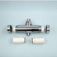浄水器(塩素除去フィルター) 「塩素とったろう」 カートリッジは2個使用のダブルカートリッジ仕様です。 ※ろ過材の漏れを防ぐメッシュ状のフィルターはカートリッジ側にありますので、フィルターが目詰まりした場合はカートリッジを交換してください。 |