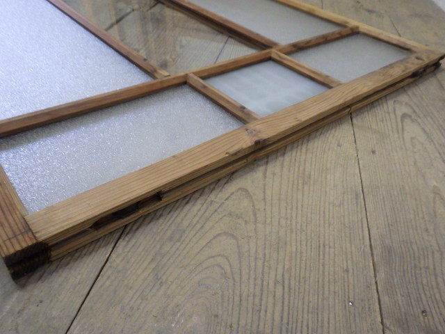 商品情報 | ■商品詳細■ アンティークの古い木枠ガラス戸です。 長年使い込まれた味わいのある品です。 ガラスは、透明ガラス、小ダイヤガラス、曇りガラスを使用しています。 一般のご家庭はもちろん、レトロな店舗什器にもお勧めです。 経年の傷や欠け、染みや桟の節抜け、 ガラスに染み等がありますが、使用には問題ありません。 ガラスにヒビや割れはありません。 古い物とご理解いただければ幸いです。 ご不明な点などありましたら、質問欄にてお願いします。 ■サイズ■ 全体(最大値) H 87,5cm×W 88cm×D 3cm 竪框 3cm 多少の誤差はご了承下さい。 |